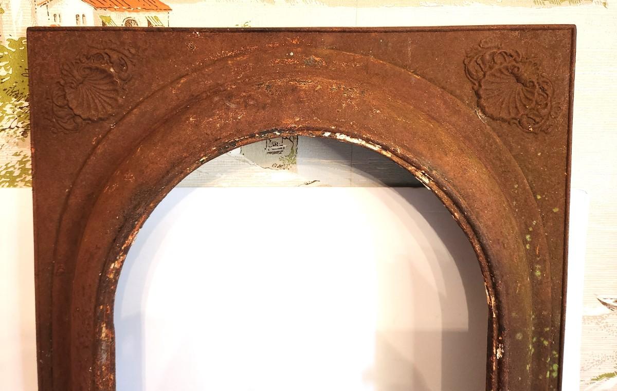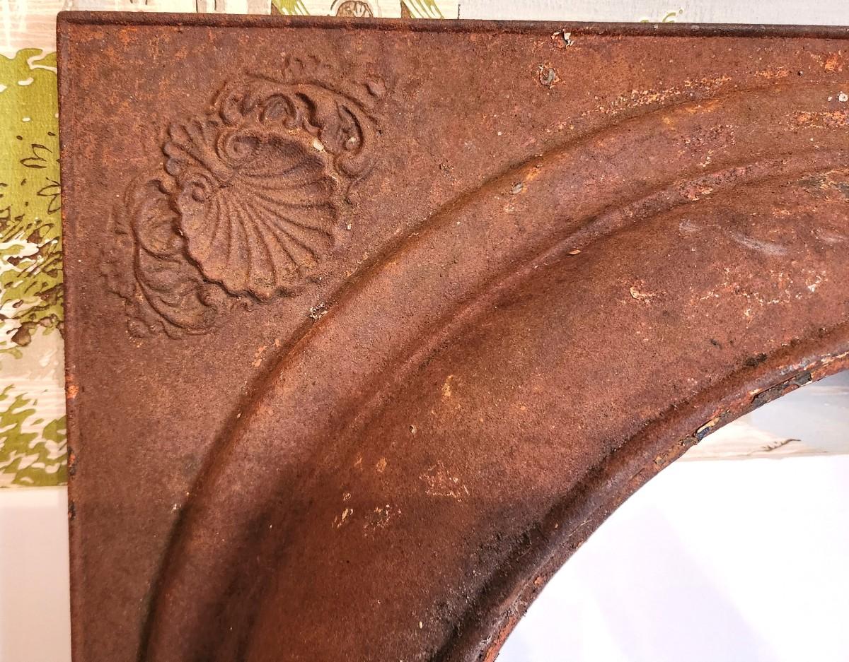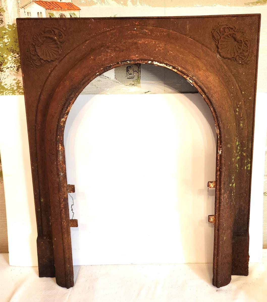 Antique fireplace insert - "shell" accents at the top corners. - 2 feet across, 27.5" tall.