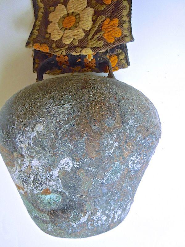 Lot 227: Antique Primitive Swiss Cow Bell on Embroidered Pull