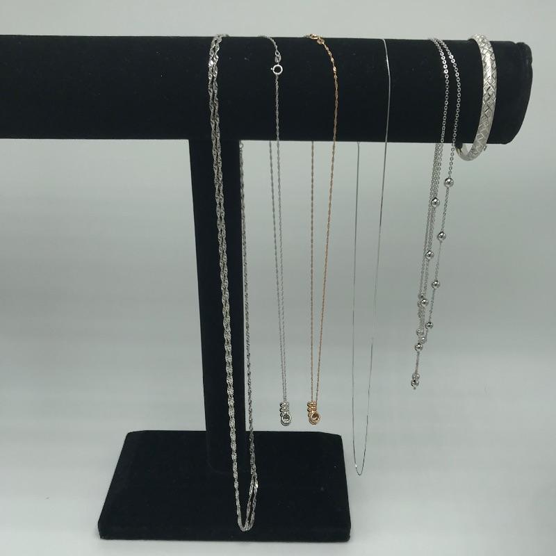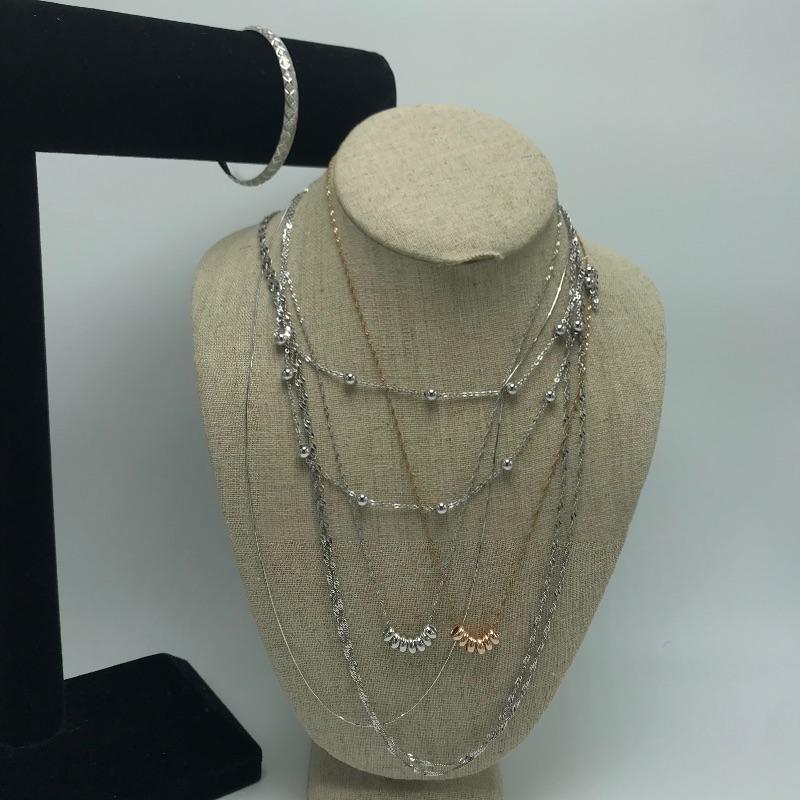Collection of five 14KT Italy necklaces and one 14K bracelet. Most are also marked Milor. One dainty chain is waiting for the perfect pendant and the others could be worn with or without pendants. Starting bid reflects at or near melt value.