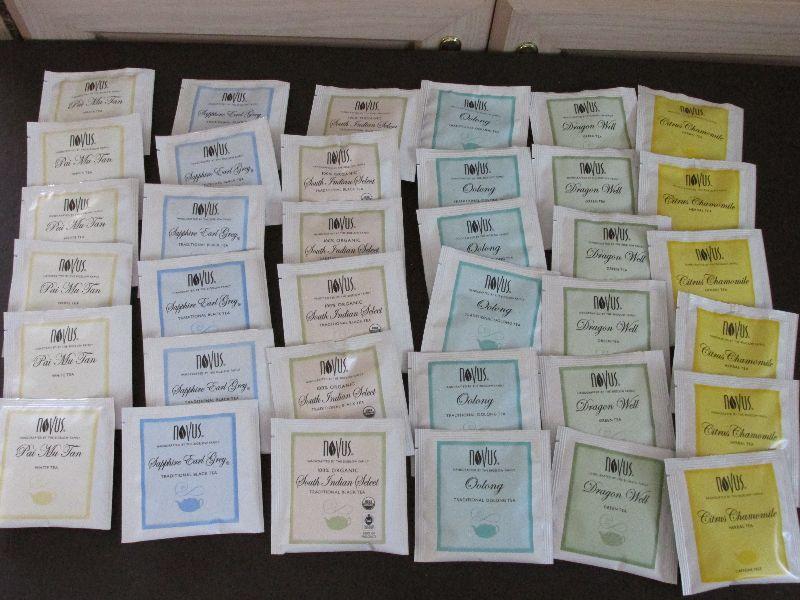 Collection of 36 new Novus Teas. 6 of each flavor: Pai Na Tan, Sapphire Earl Grey, South Indian Select, Oolong, Dragon Well, and Citrus Chamomille.