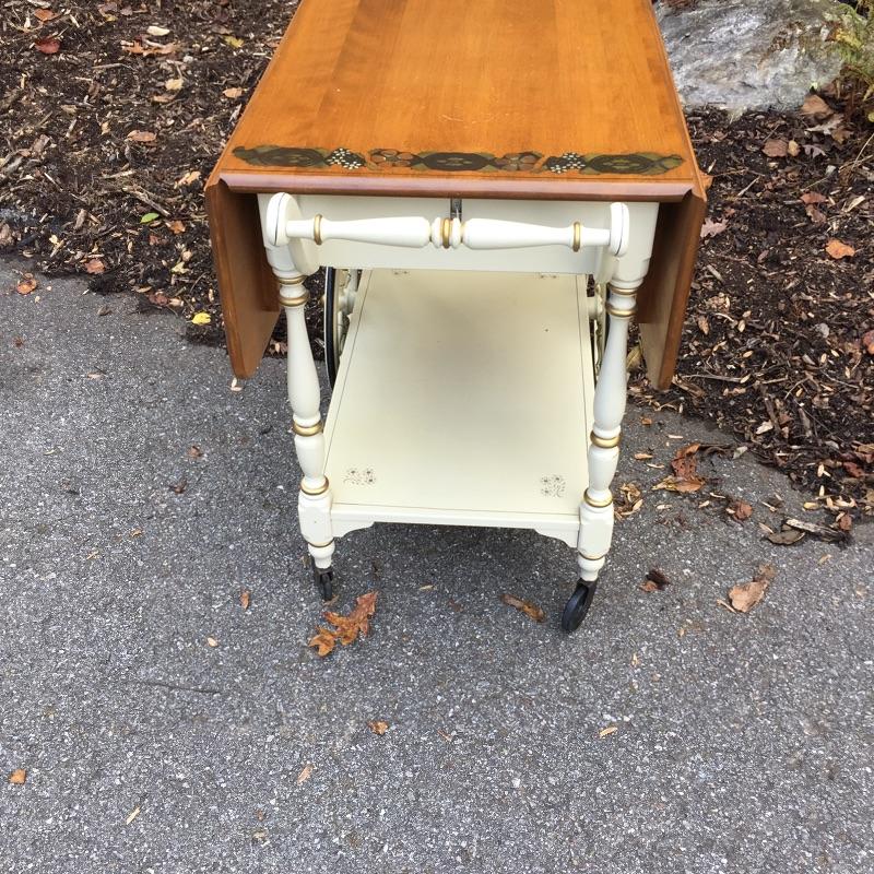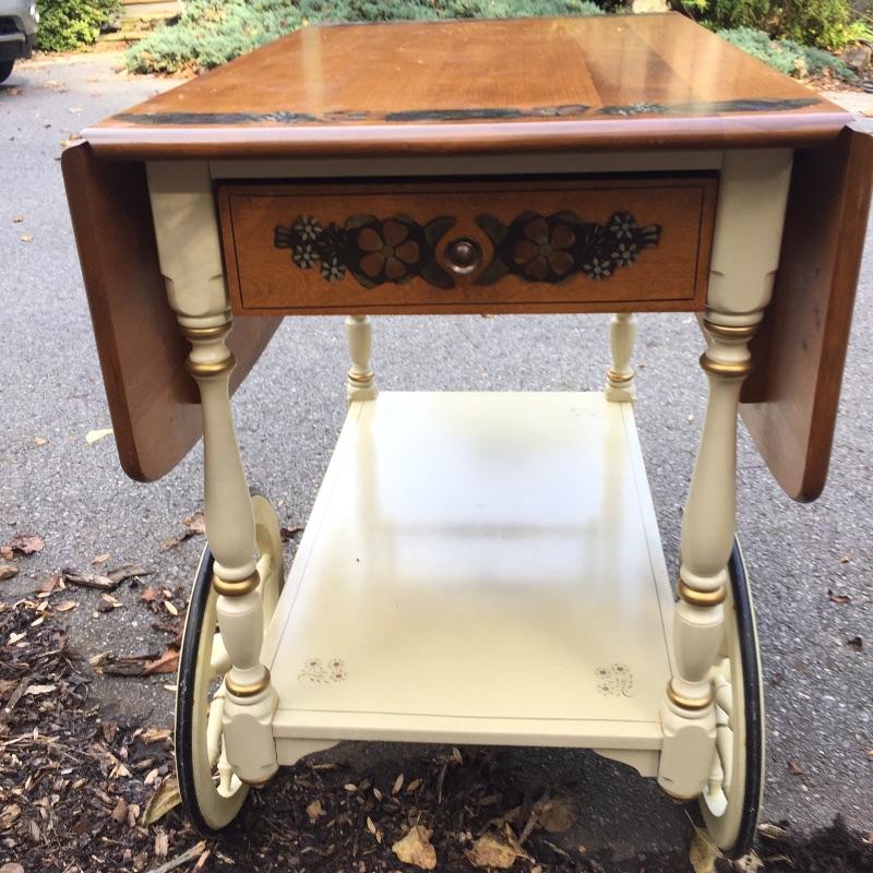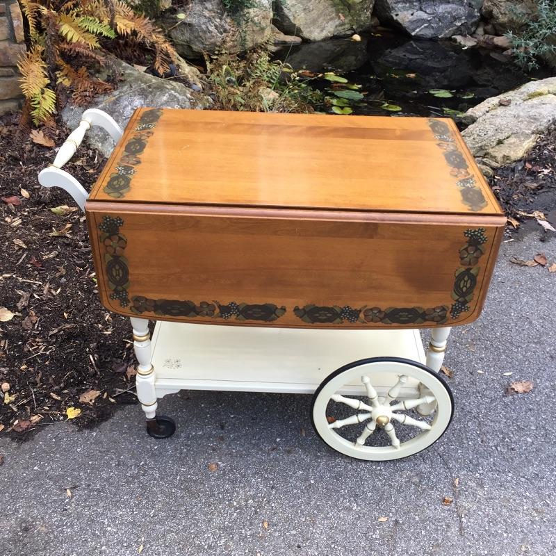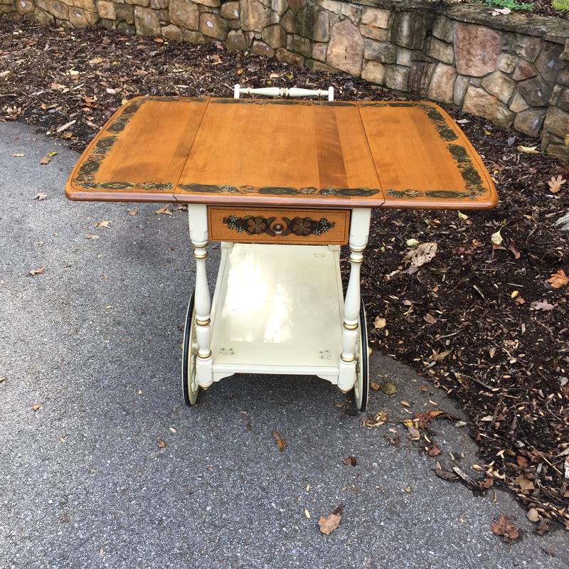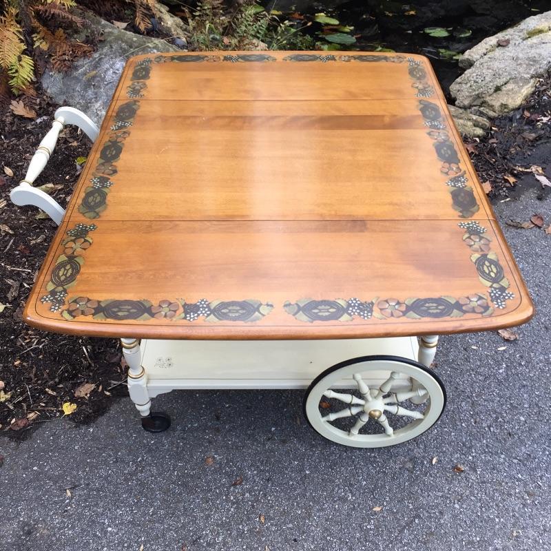 Enchanting Ethan Allen drop leaf tea cart with big wheels. Get those pinkies up and enjoy your tea with this awesome tea cart.