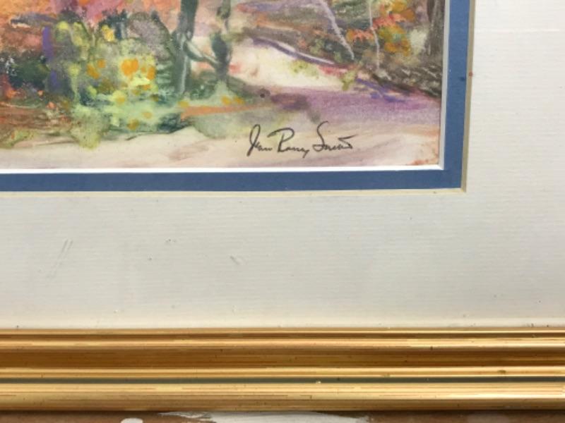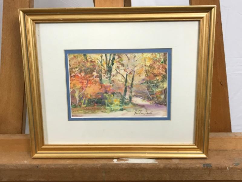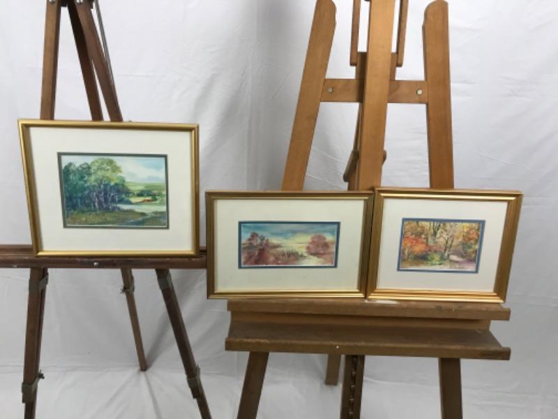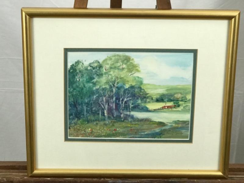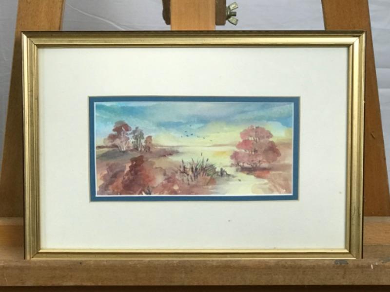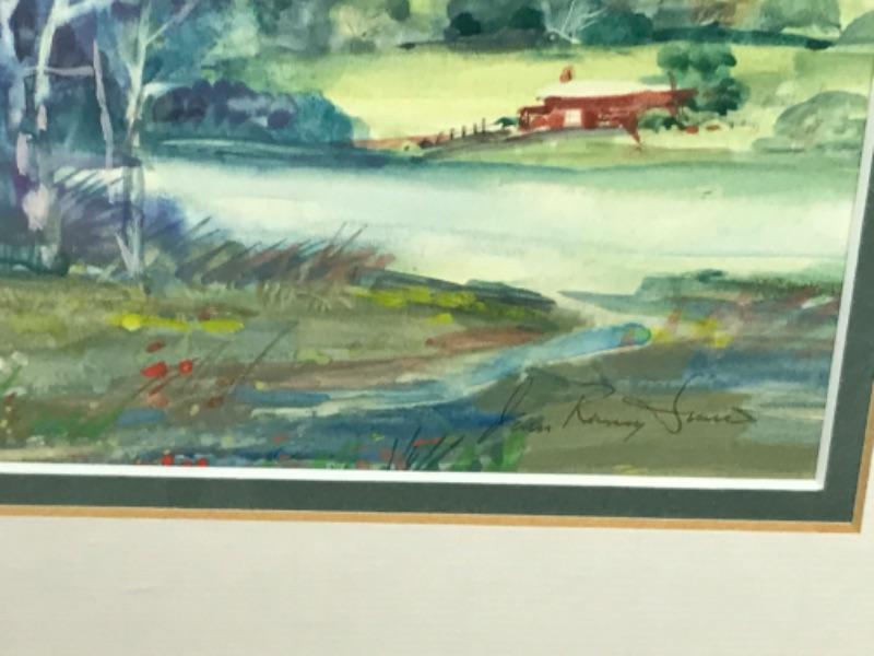 Three Jean Ranney Smith framed original watercolor paintings “Flight Of Geese” measures 13”x9” unsigned, “Farm Scenery” measures 13”x10-1/2” signed and “Autumn Trees” measures 11”x9” signed