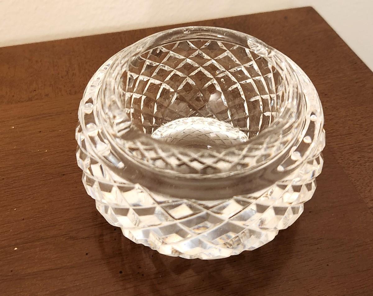 Nice lot of 2 pretty crystal ashtrays - smaller is Waterford (marked) - 3.5" across - the larger is Mikasa (marked) - 5.5" across. Both in good condition.