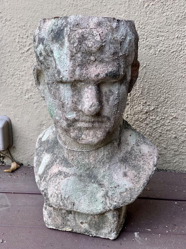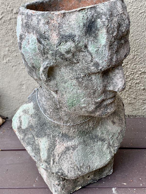All he needs is a plant to grow hair! Antiqued & weathered planter 18" tall