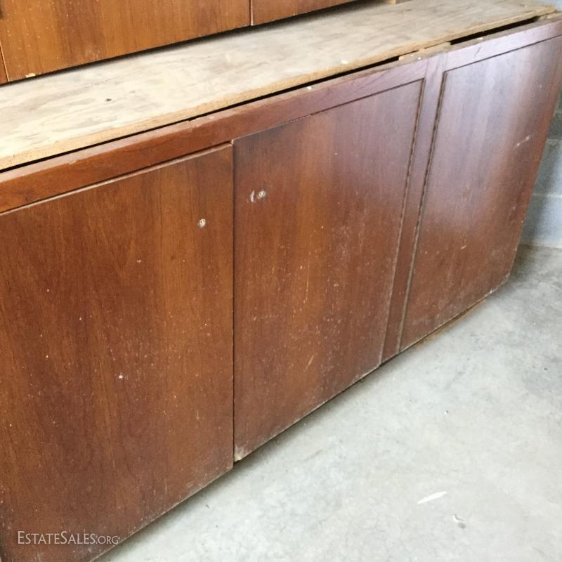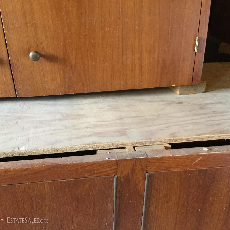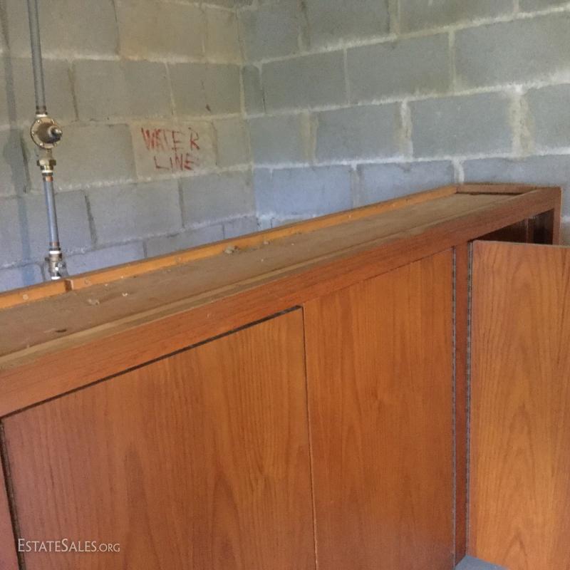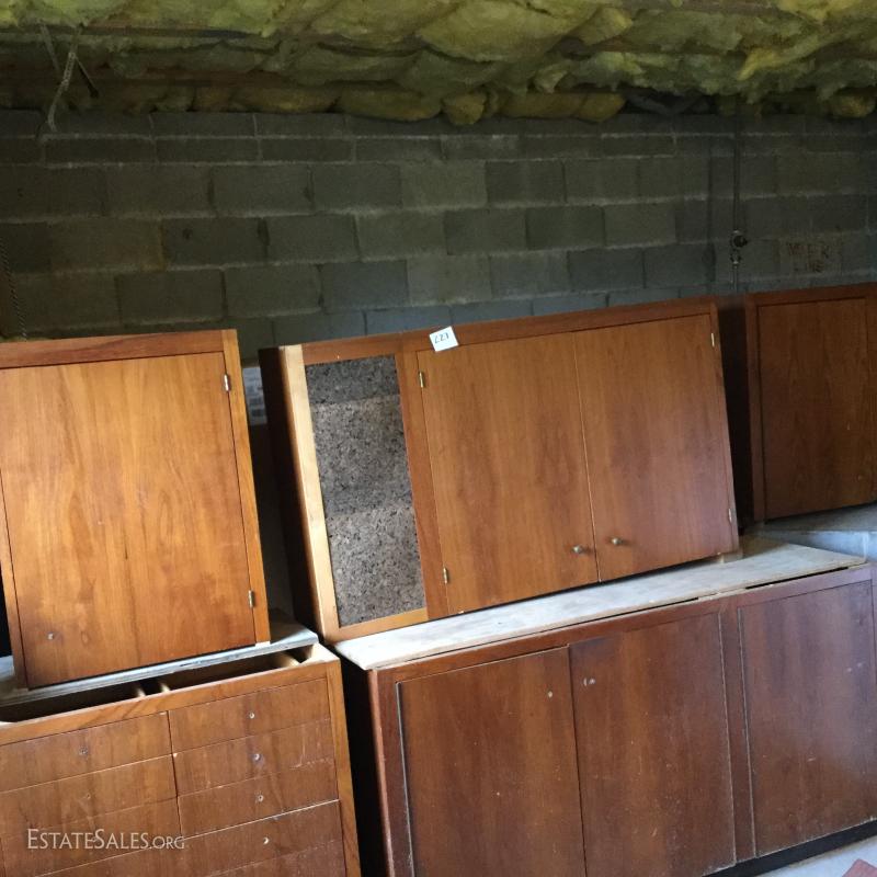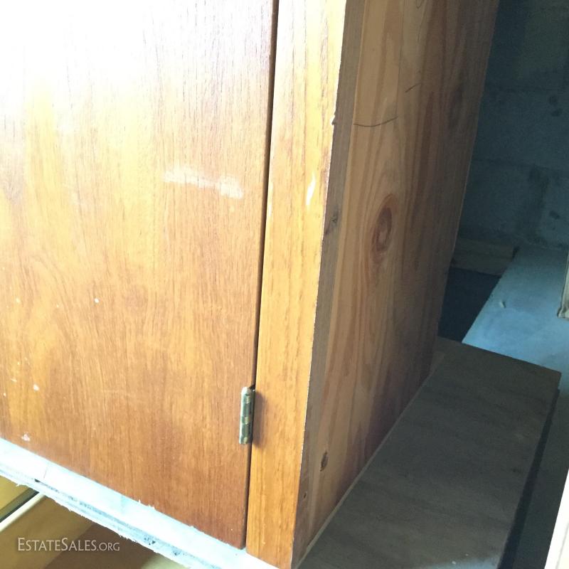 Used kitchen cabinets that would be great for a workshop or bonus room. Two are floor cabinets. One with drawers measures 33"l x 24"w x 35h and other is 65"l x24"w x 35"h. Three wall mount units measure 24"l x13"w x 32"h, 54.5"l x13"w x 32"h (has cork board on it) and 65"l x14"w x 32"h. Hardware is removed for transport on most pieces and there are moveable shelves inside most units. This is a large lot and will require a large truck and man power to move. Lot is available for local pick up in Hendersonville, NC only.
