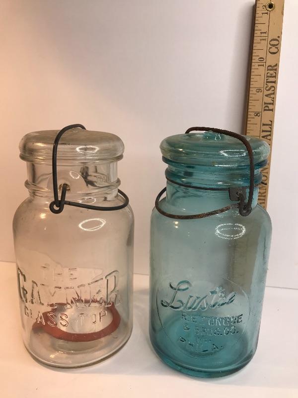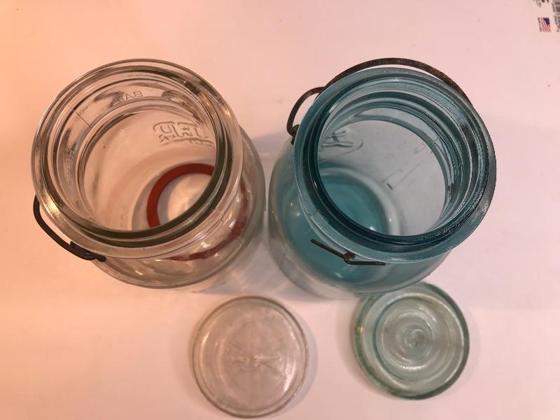 Vintage Glass Canning/Fruit Jars. these are larger inside and make great decor! Each lot is unique and you will need to see all pictures. Pictures have been taken from all side to see condition and markings. What you see in the pictures is the actual content of the lot and the pictures are the best representation of the bottles. All bottles are sold-is according to the pictures. For further information please google the makers marks for age.
