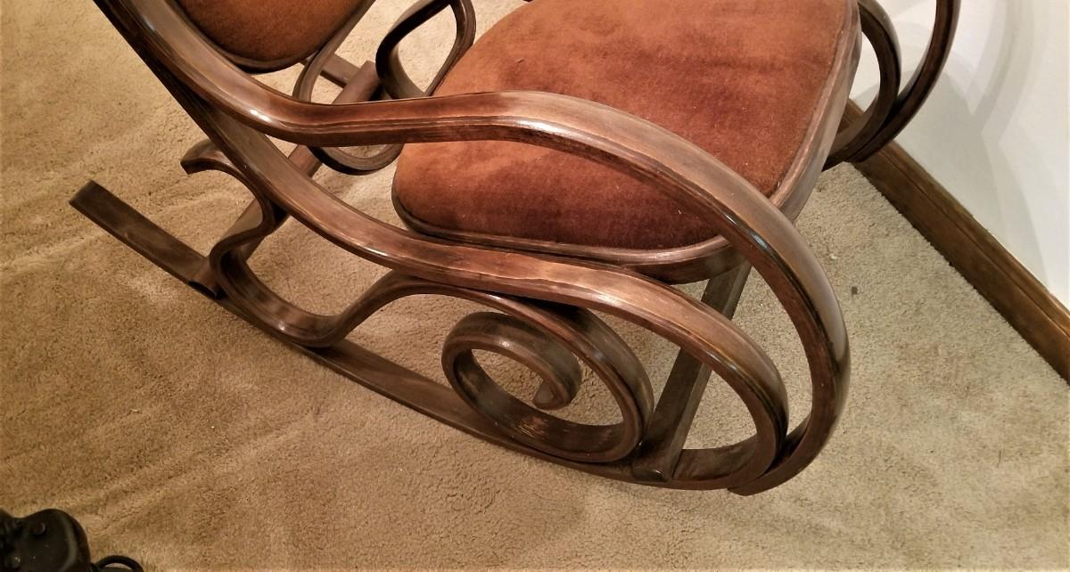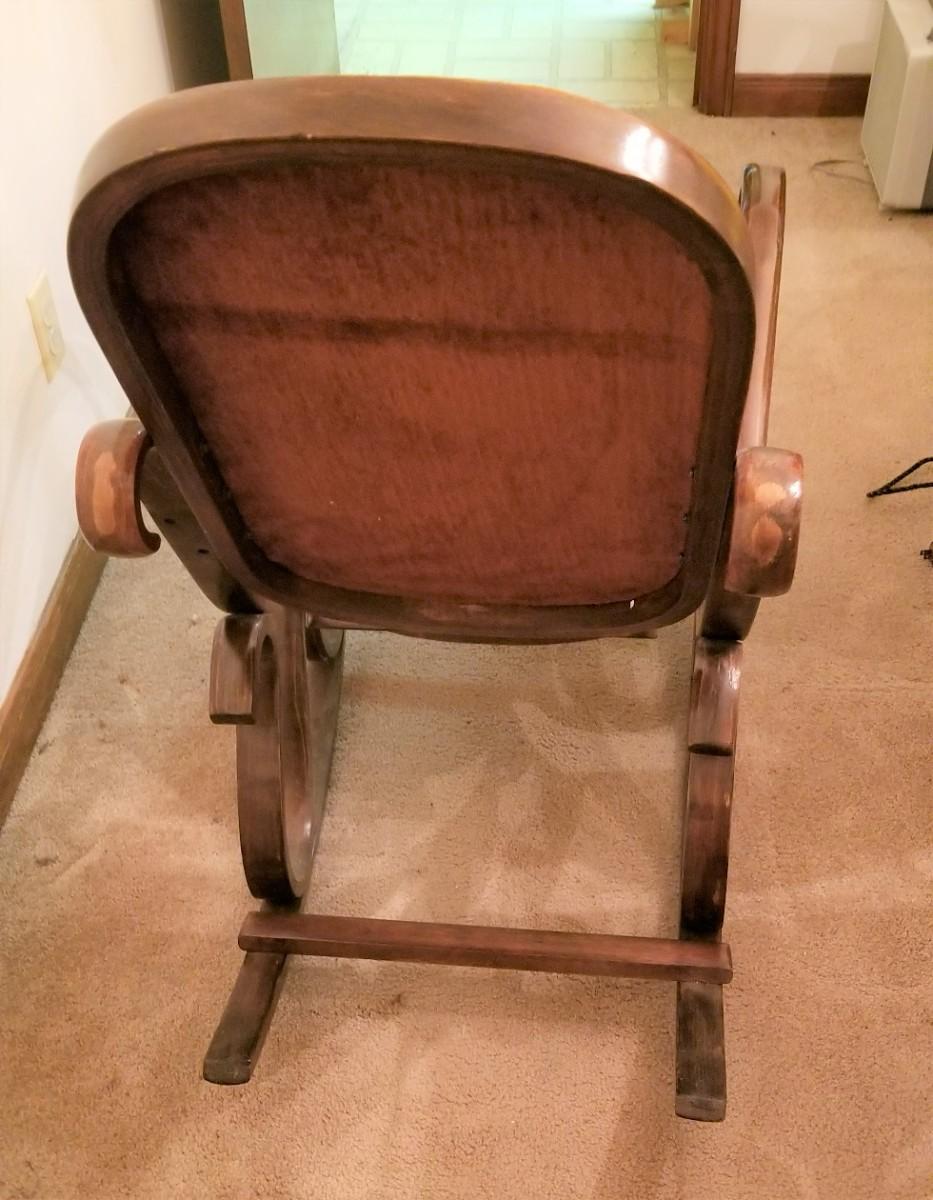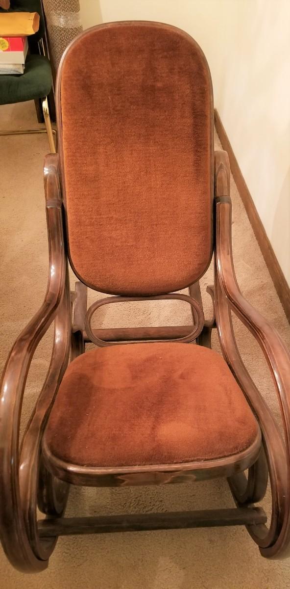 Early 1980's Bentwood upholstered Rocking Chair - has label "JAYCO" company - Good condition. 21.5" across, 37" deep.
