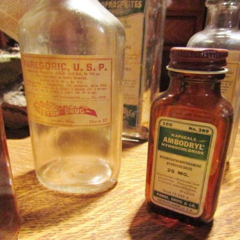 LOT 227 VINTAGE MEDICINE BOTTLES & CRAZY PHARMACIST BY ELFI