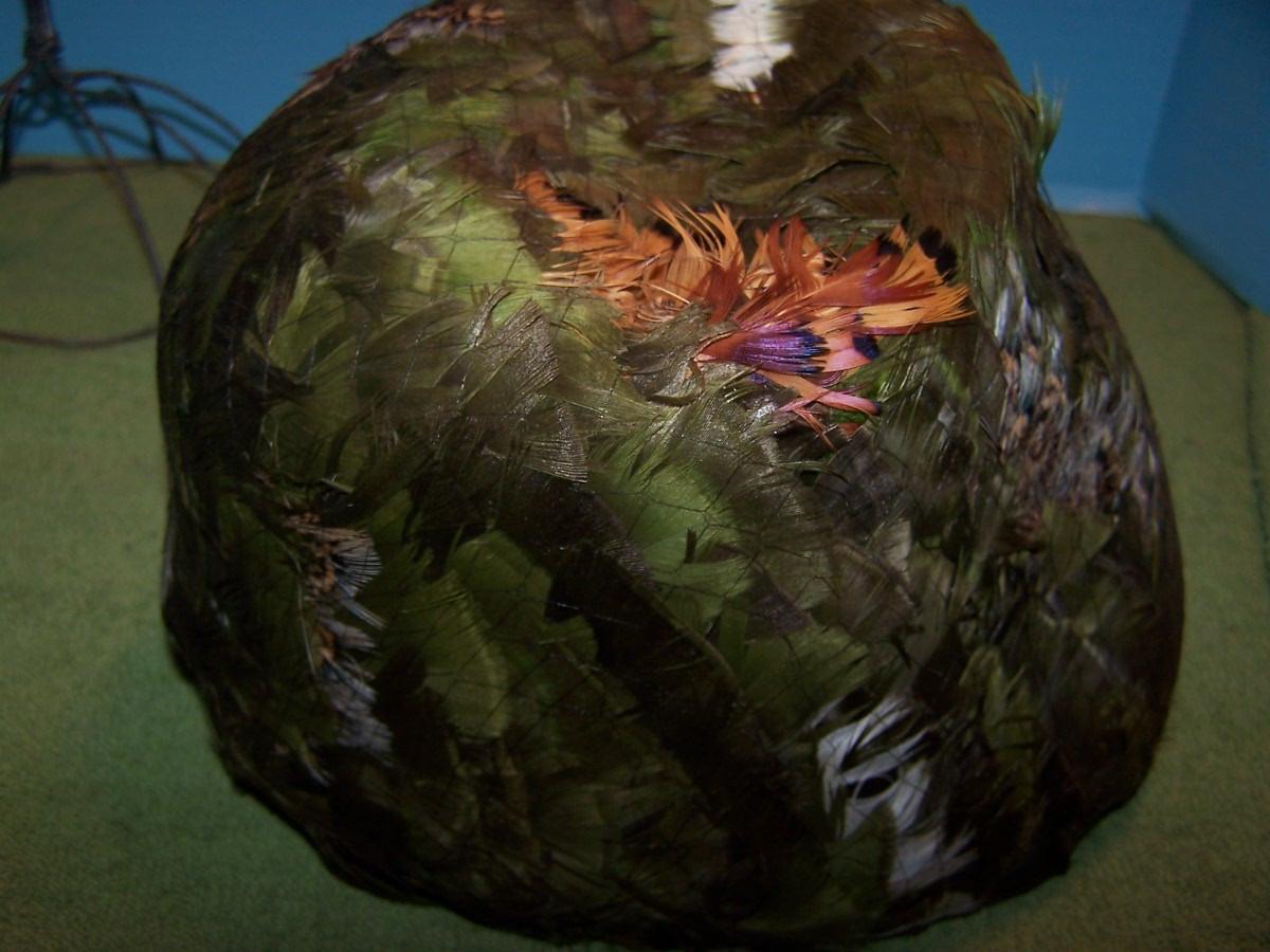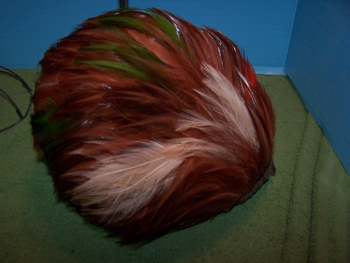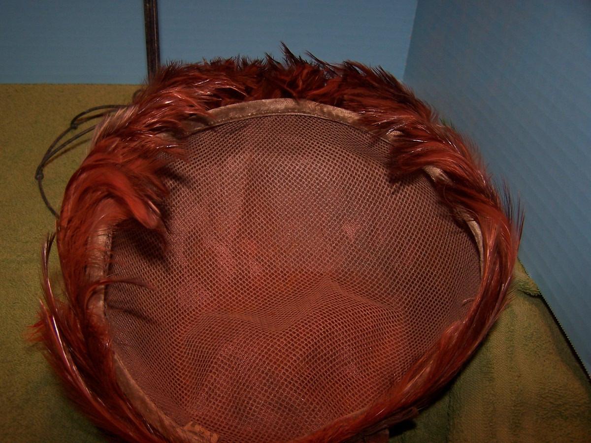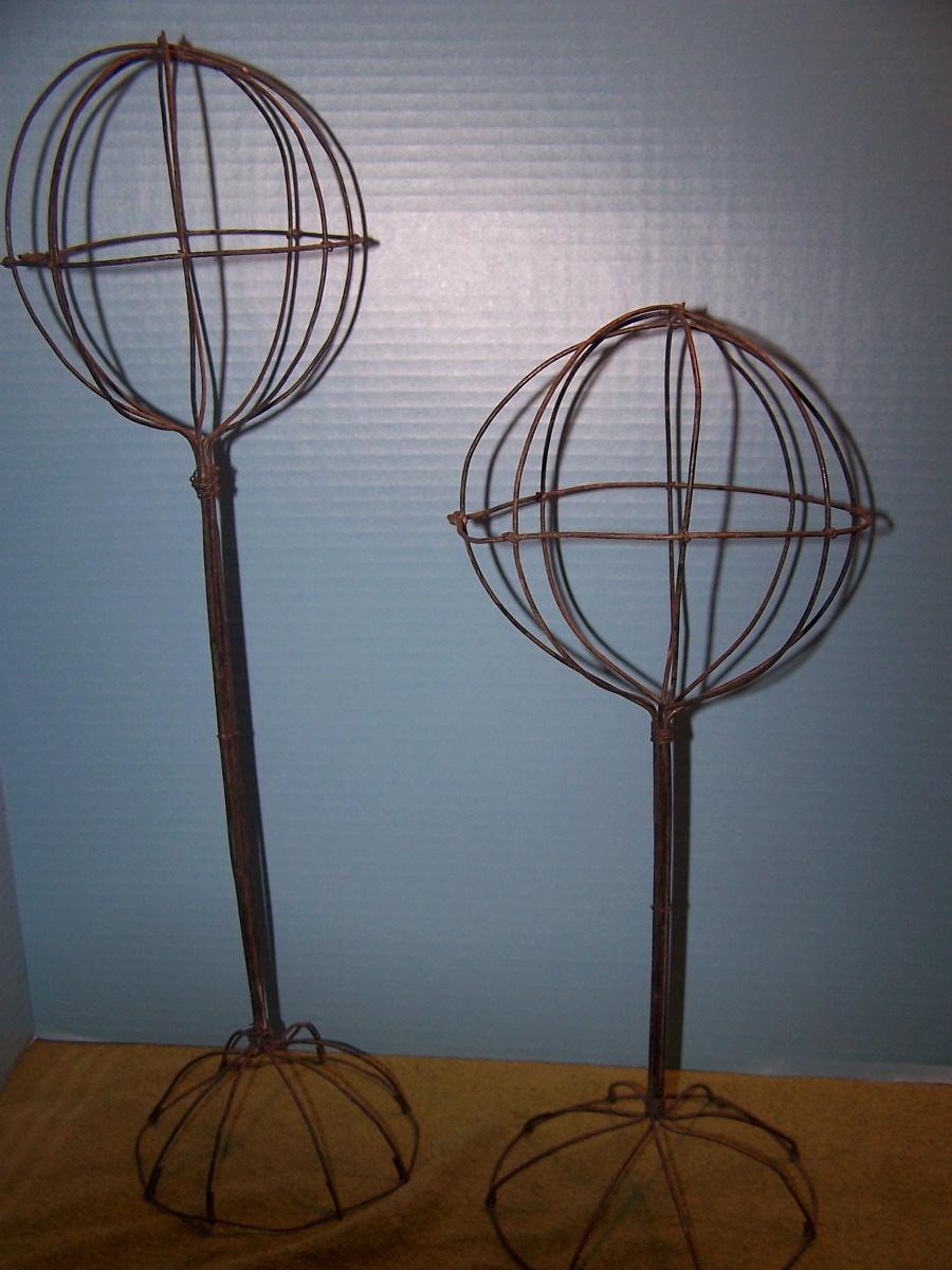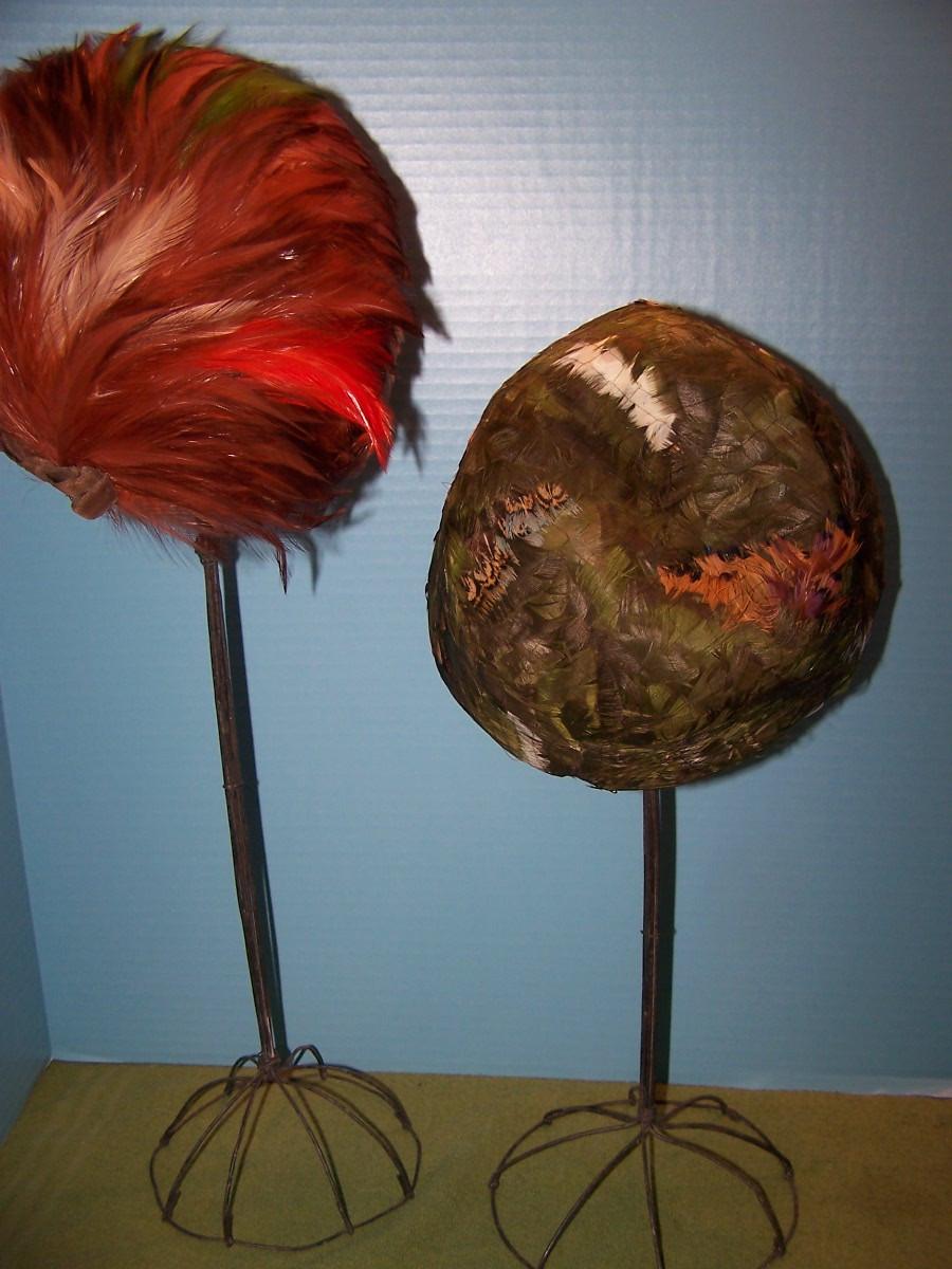 THESE ARE WONDERFUL VINTAGE FANCY FEATHER HATS & WIRE HAT STANDS!!! THE TALL STAND IS 21 3/4'' TALL... THE FEATHERS ARE A BIT RUFFLED... LIGHT WEAR...