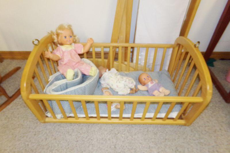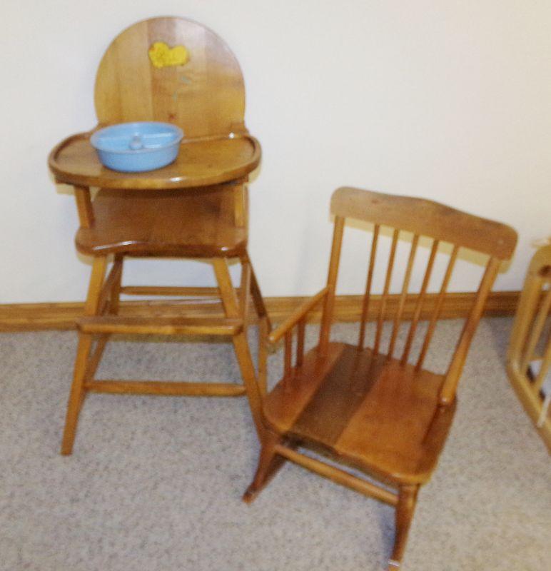LOT 228  VINTAGE HIGH CHAIR, ROCKER AND BASSINET
