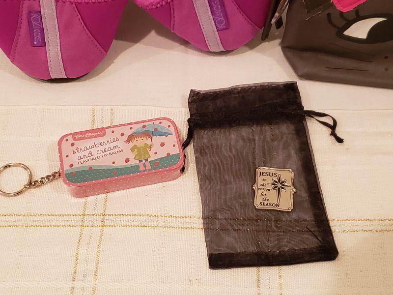 Lot 228: NEW Slippers, Lip Balm, Inspirational Token & Wristlet Purse