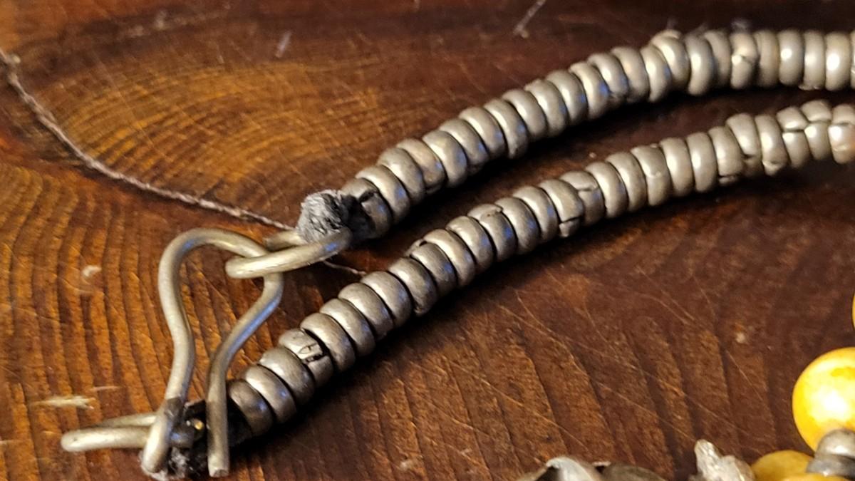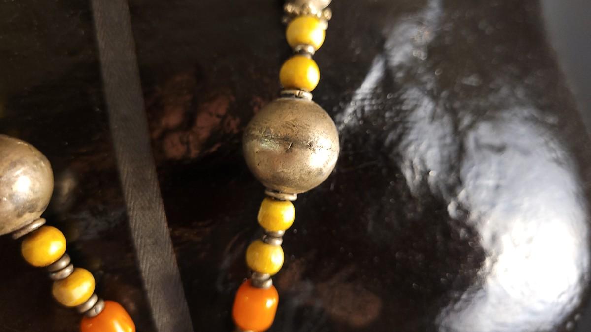 Lot 228: Vintage Sterling African Squash Blossom Beaded Necklace