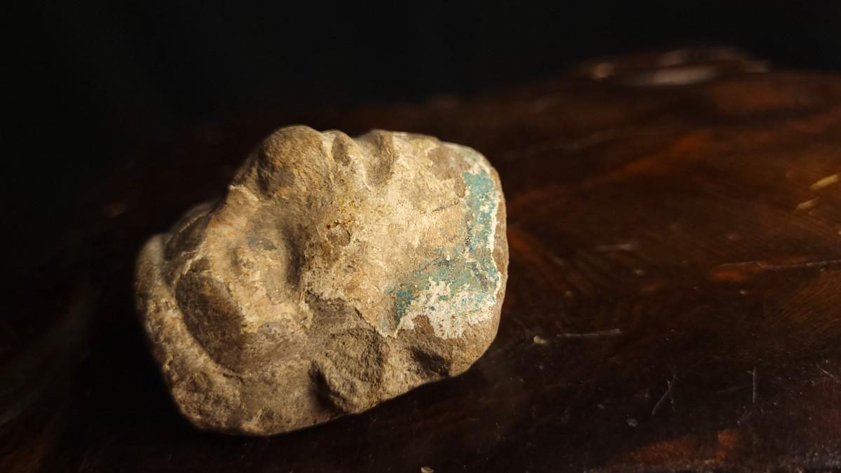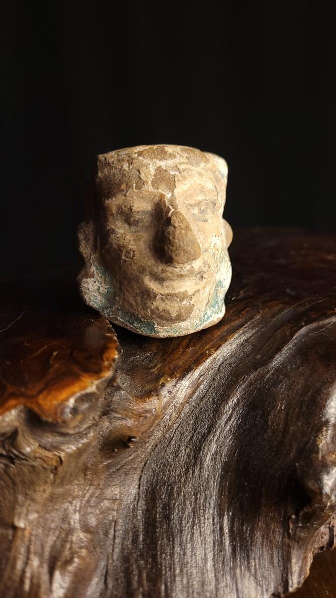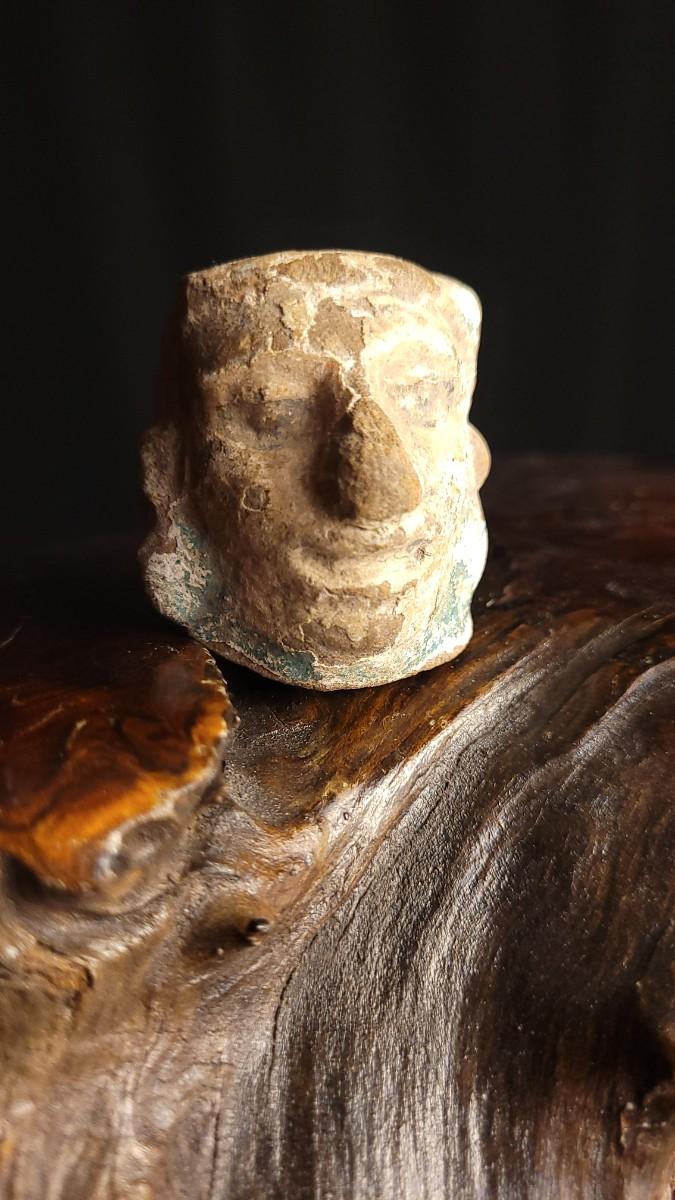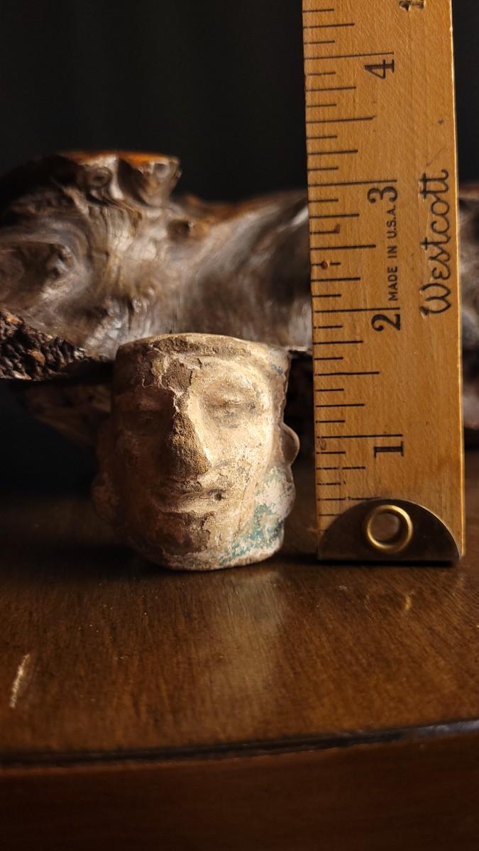 2" x 1.75" x 1.25". ☆☆☆ Original green paint still adorns this ancient Pre-Columbian Head.