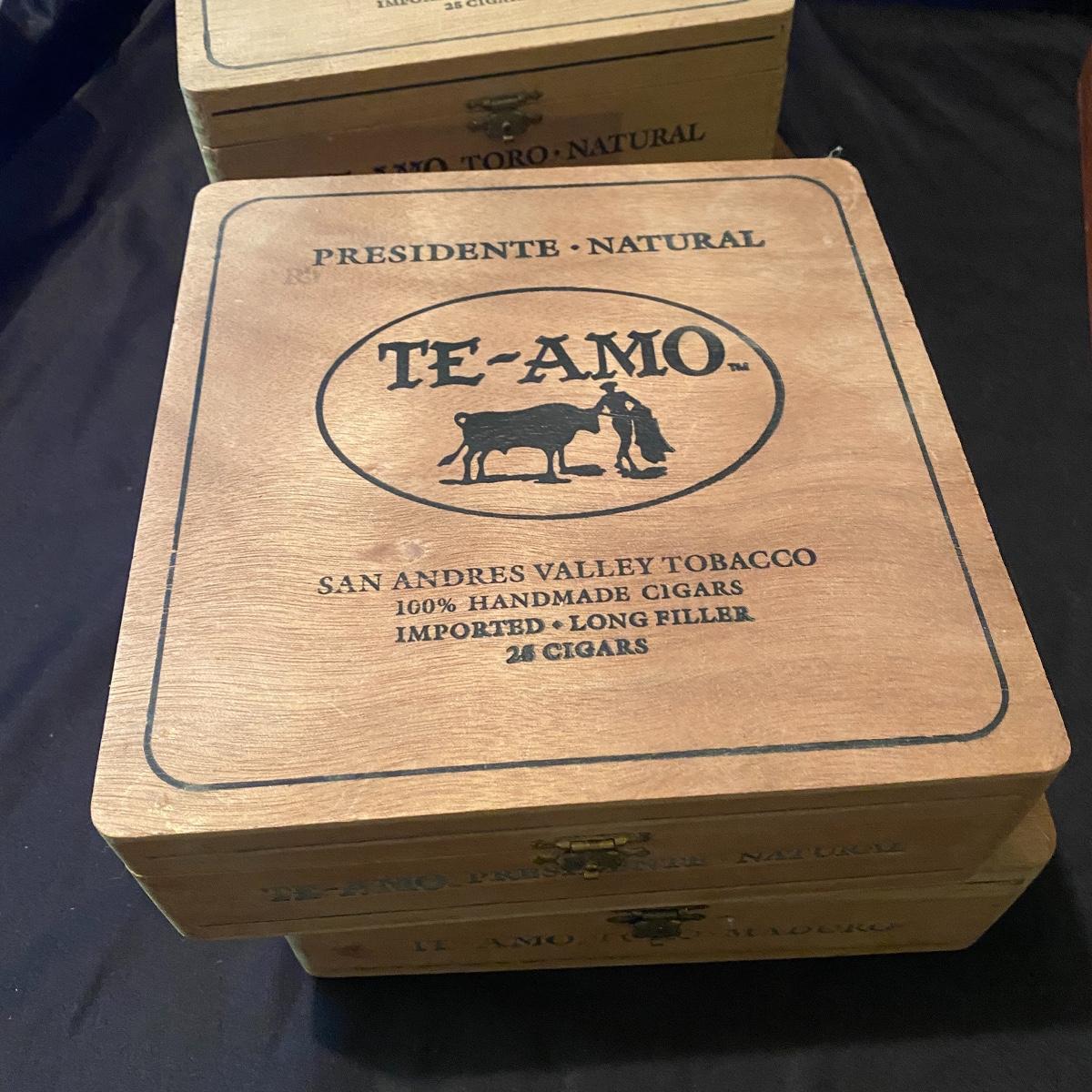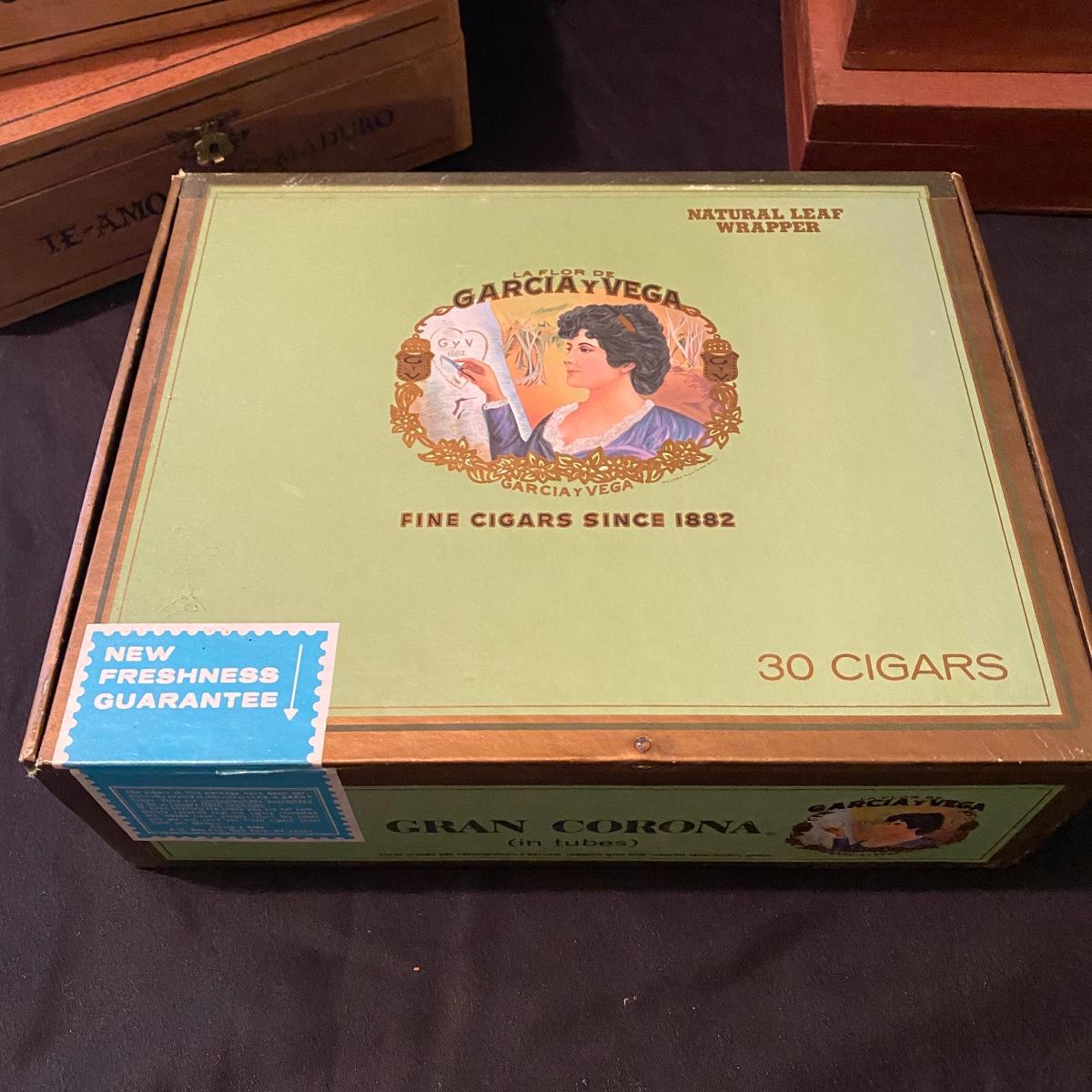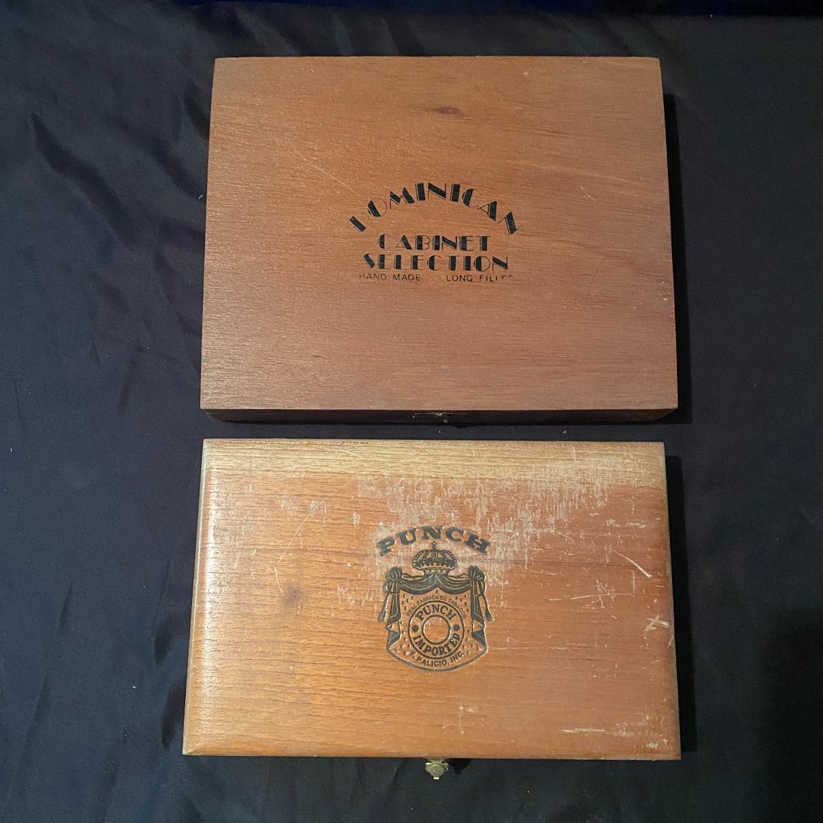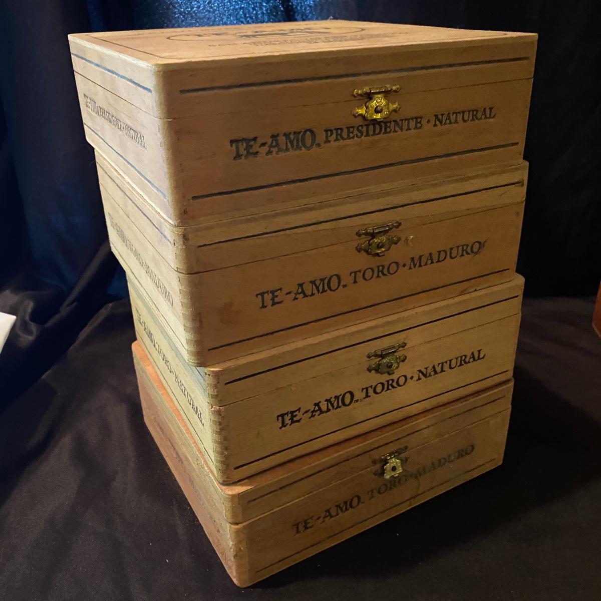 What a better way to store stuff than a creative cigar box. These are from all over the world. There are 6 wooden boxes and one green cardboard box. (9” x 7.5” x 3” tall) Four identical boxes in the mix. (Each measure 8” x 7.5” x 2.5” tall). Shipping available.