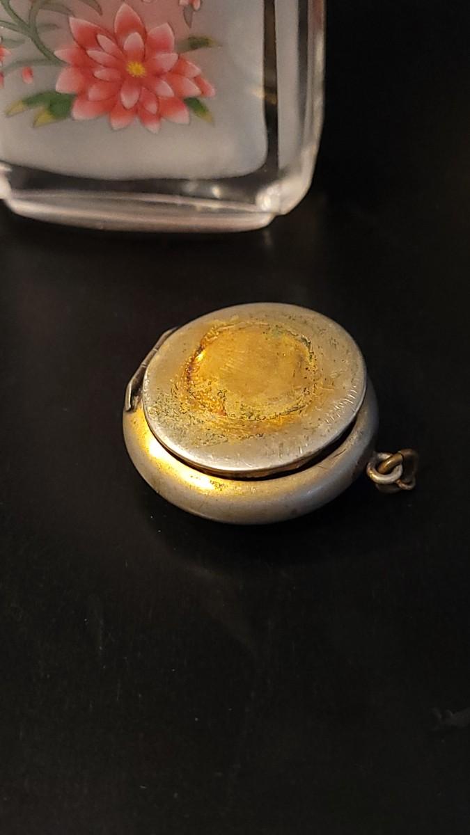 Cut Glass scent snuff bottle and Brass? snuff pendant