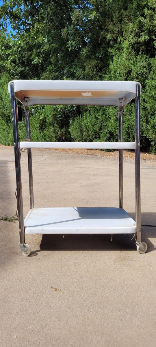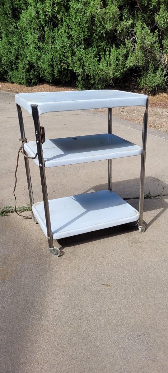 Lot 228: Vintage Mid Century Modern ROLLING CART w/ Power Source