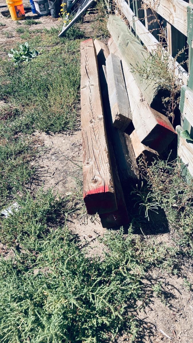 SOME ARE PRETTY WEATHERED BUT COULD STILL BE USEFUL 8"X8" 8 FOOT LUMBER