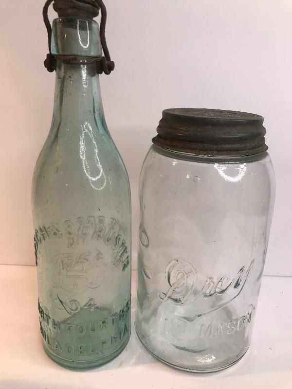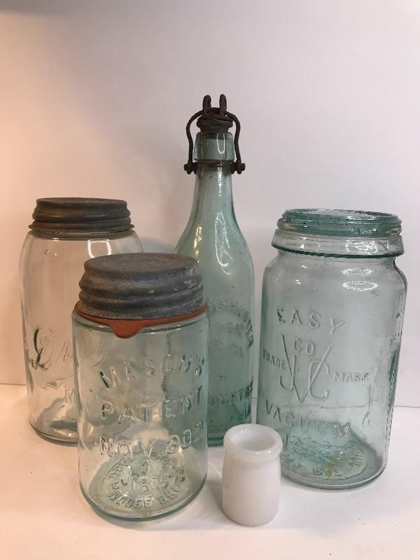 Lot 228A: Antique Jars (Drey Mason, Schuster Soda, Easy Vacuum, Mason)