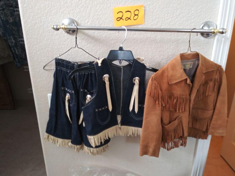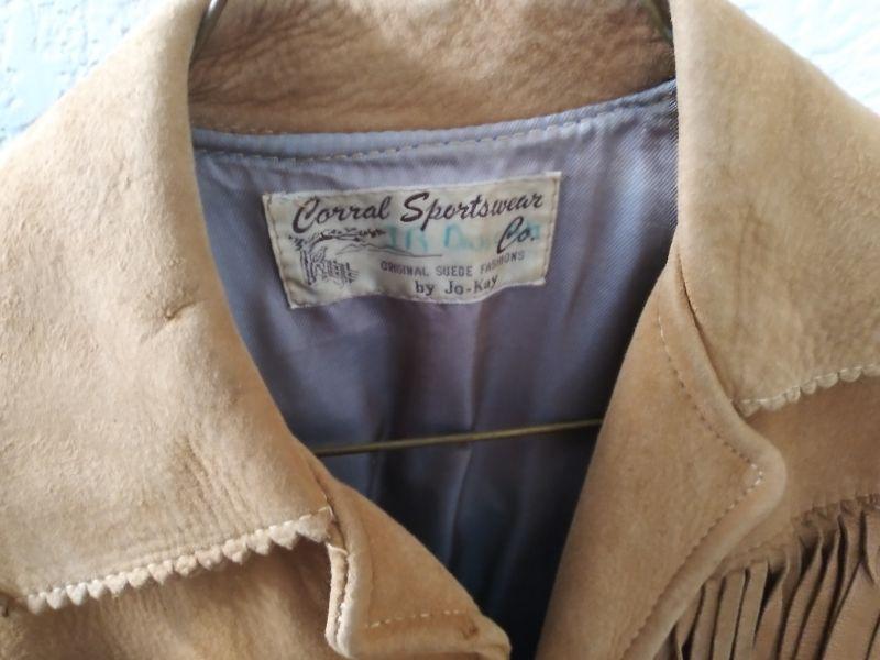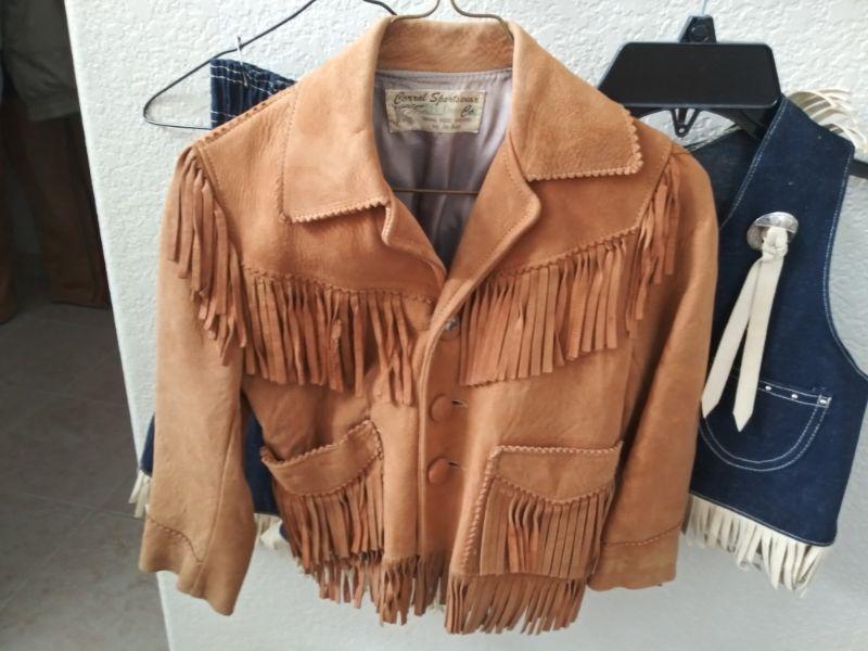 LEATHER FRINGED JACKET BY "CORRAL" MATERIAL IS COMING OFF TOP BUTTON (SIZE 3-4)
