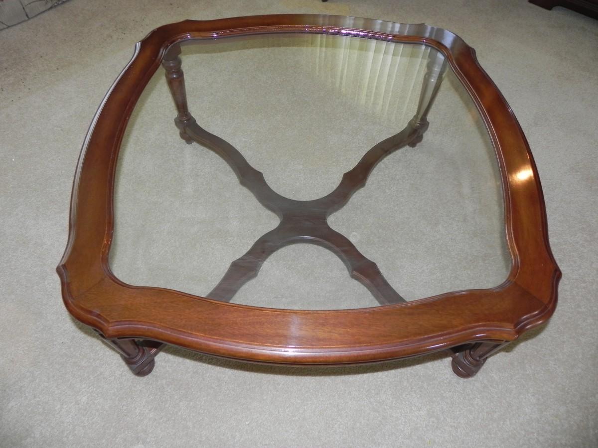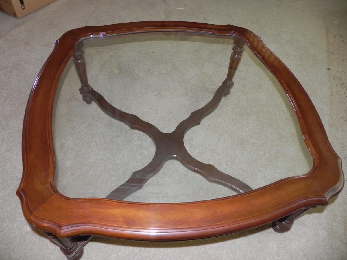 IN GOOD CONDITION WOODEN FRAME WITH GLASS TOP MEASURES 36" SQUARE