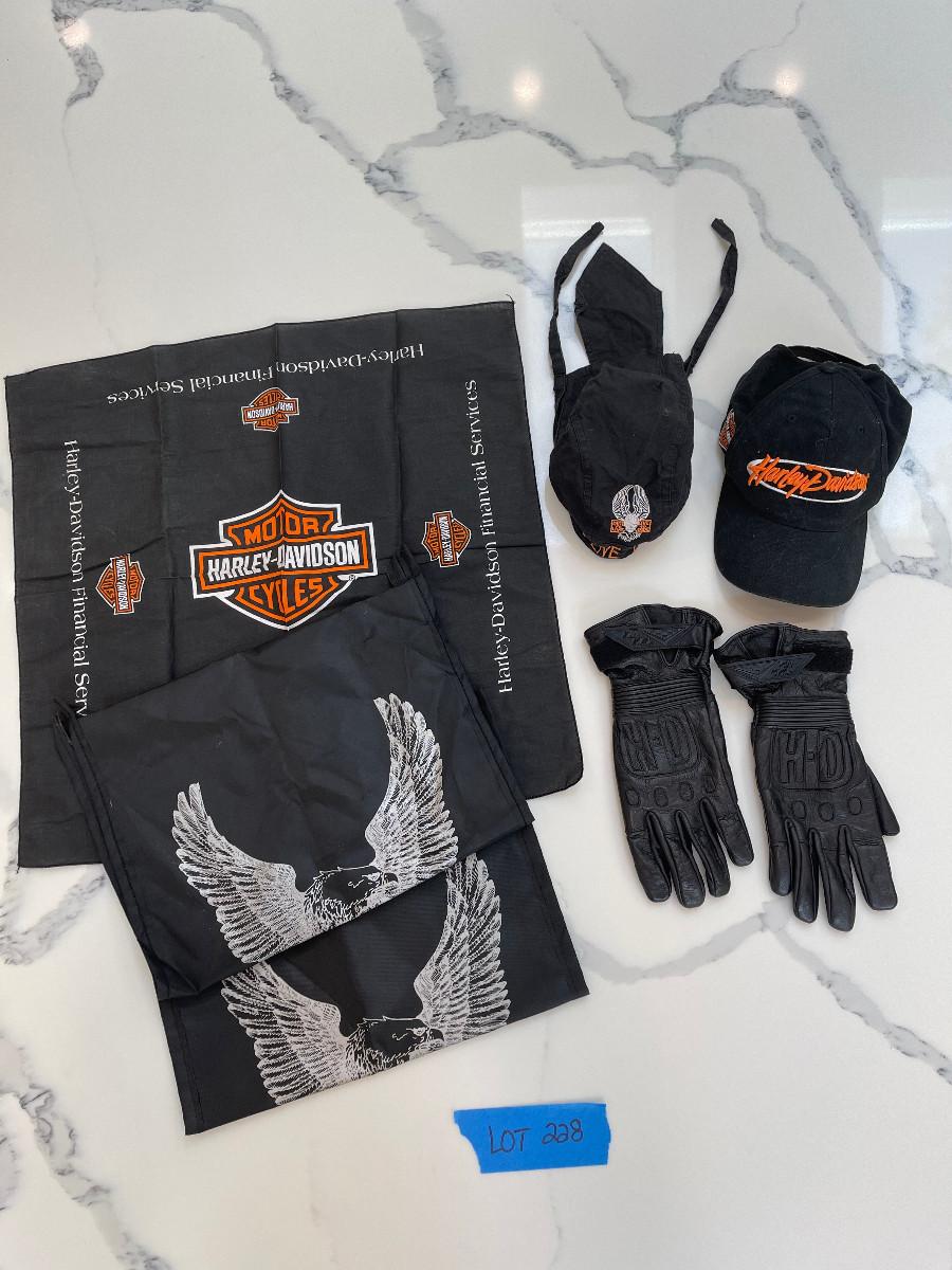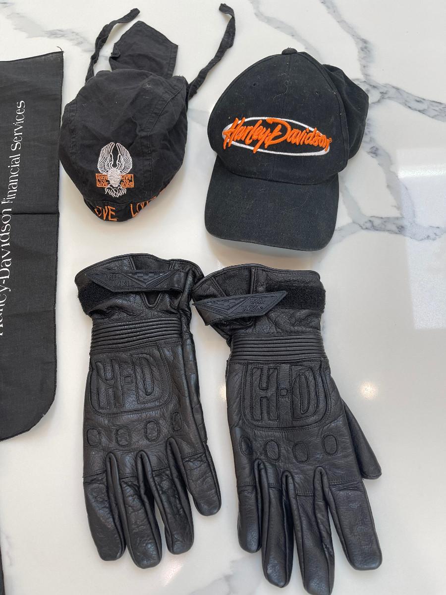 Harley-Davidson Hat, Bandana, Leather Gloves and Accessories.