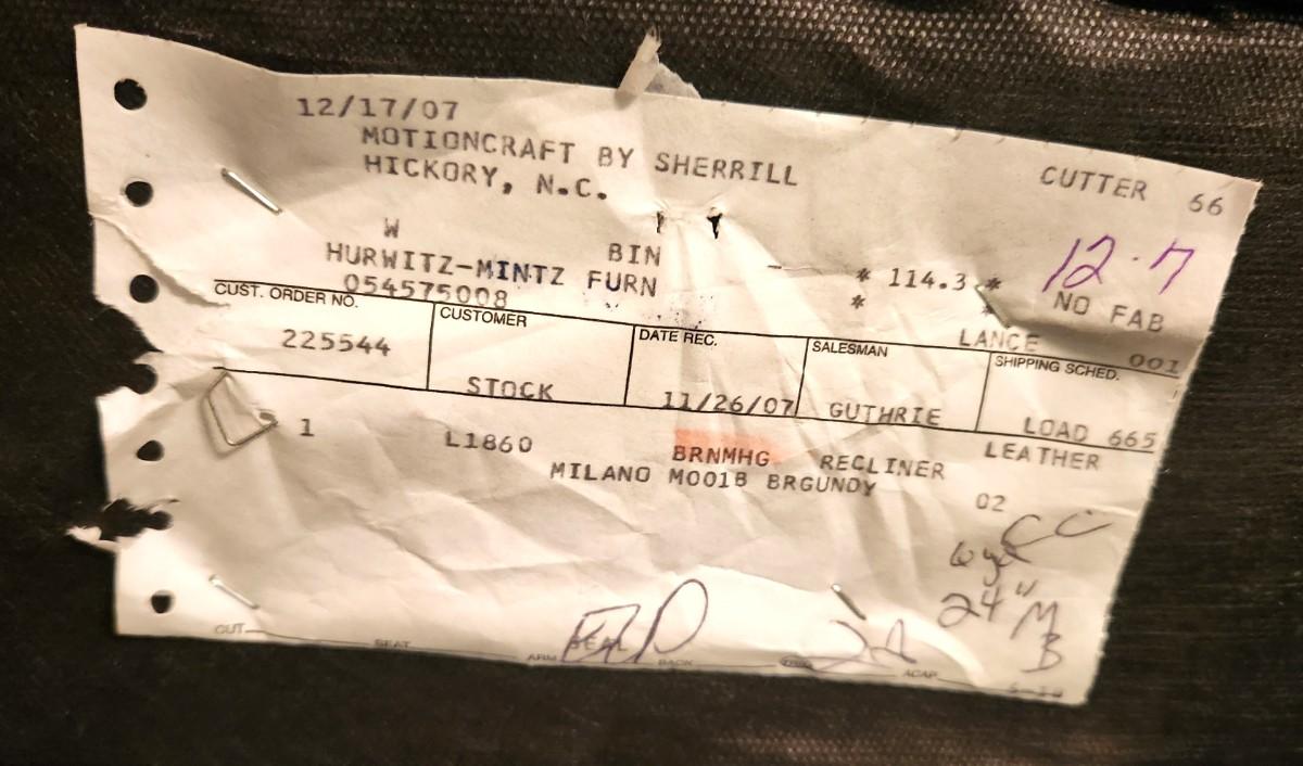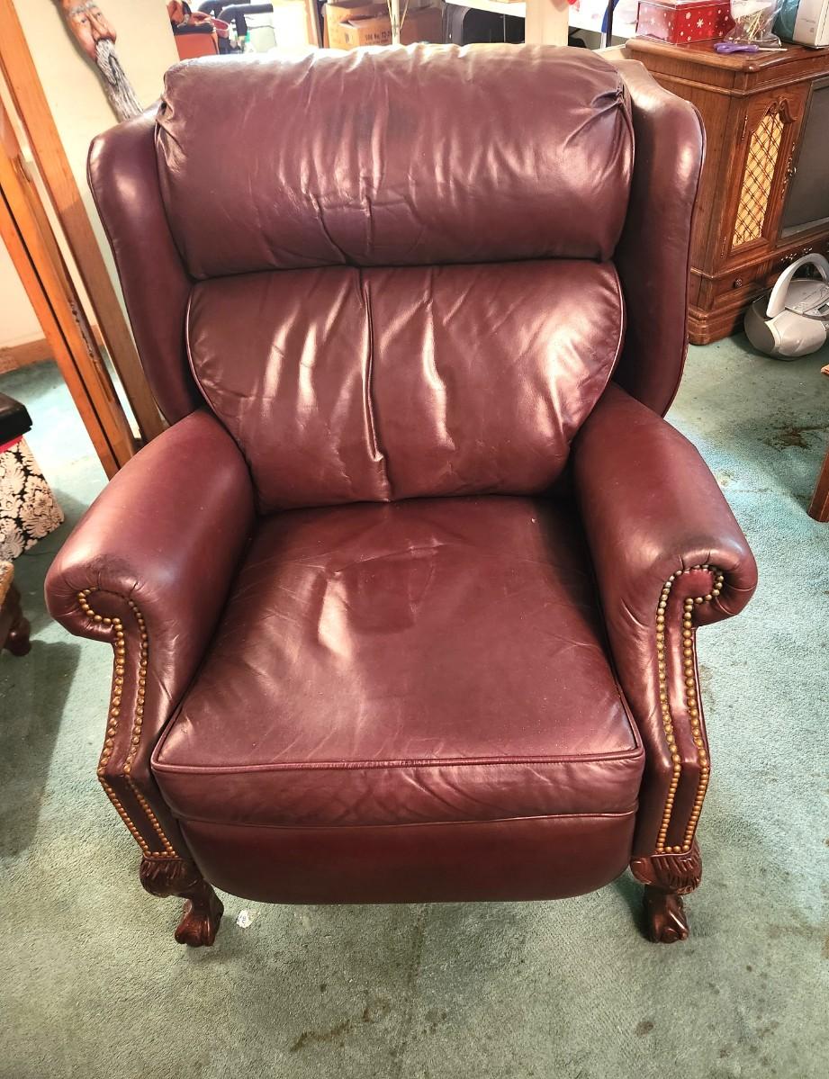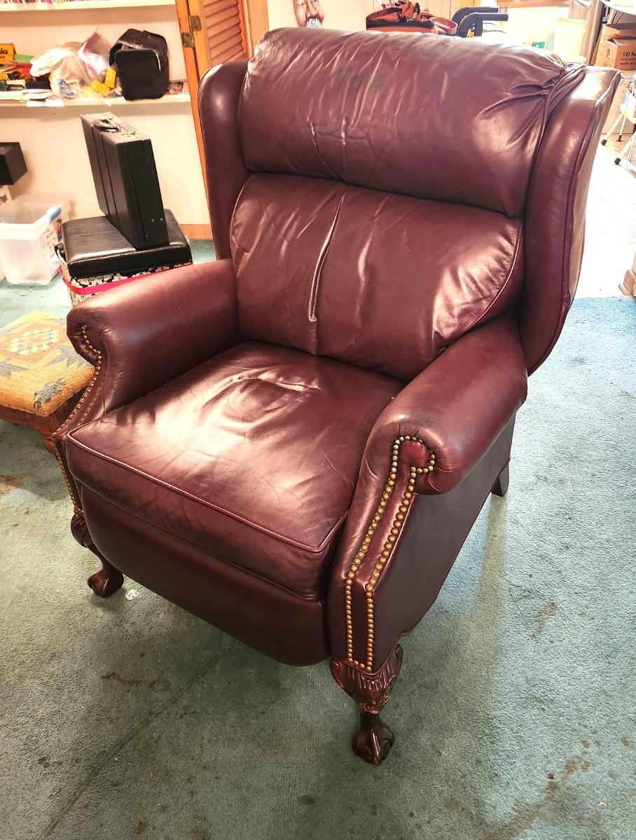 Very nice recliner - great condition - has tag. Hurwitz Mintz Leather Motion-Craft by Sherrill - 33" across, 40" tall, 31" deep. A Classic!
