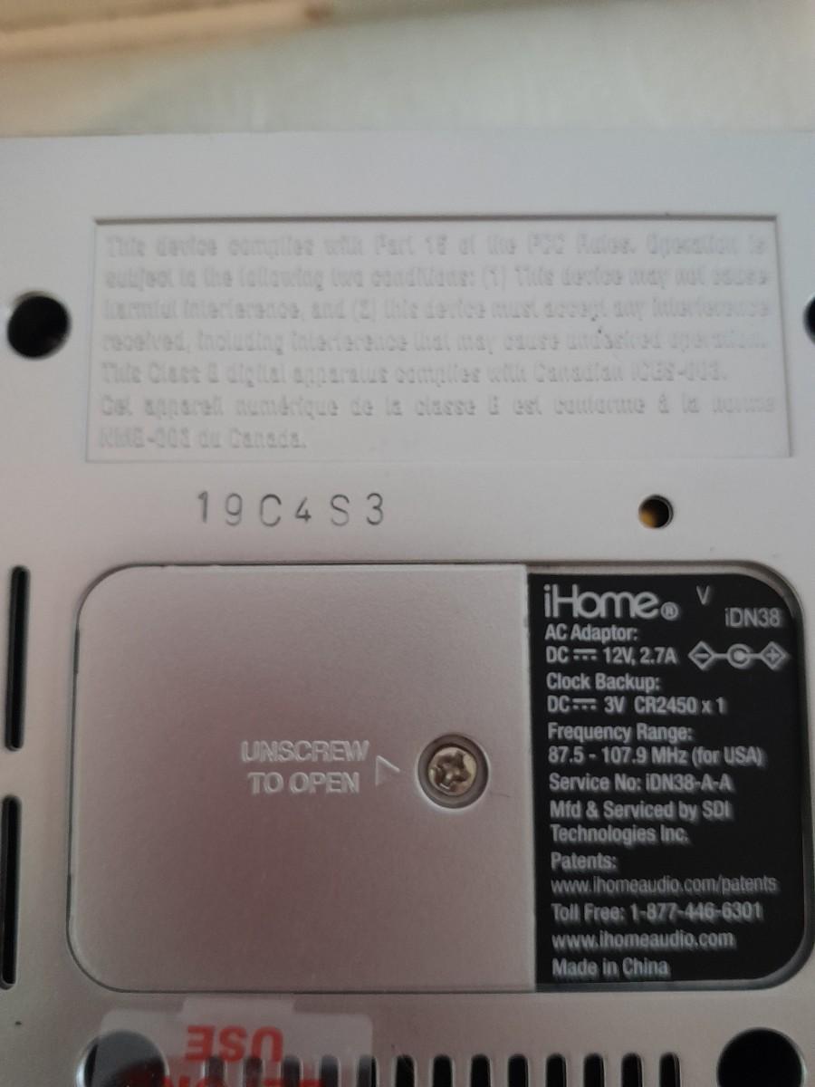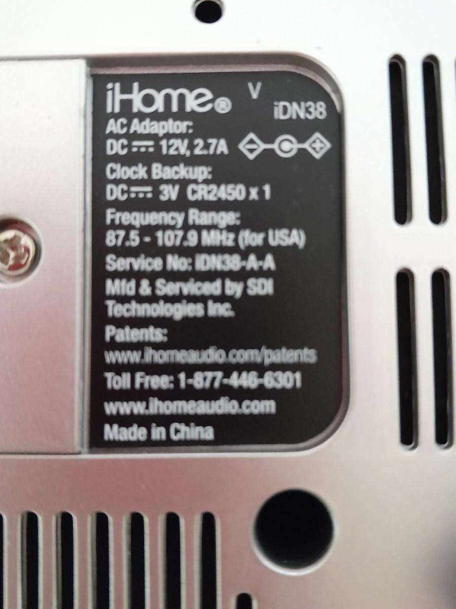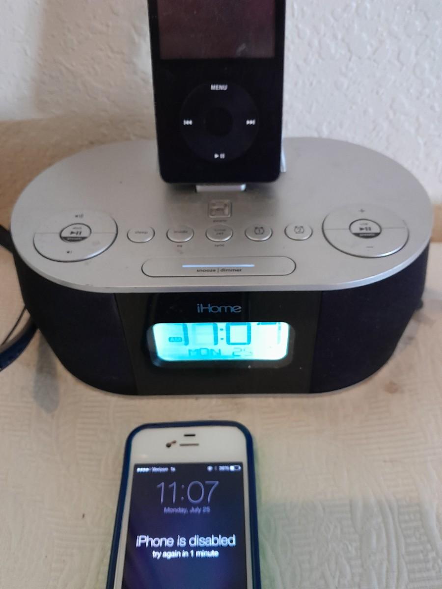 IHOME RADIO WITH IPOD AND I PHONE I PHONE IS PASSWORD LOCKED, HAS CRACK ON BACK BUT WORKS! COMES WITH CORDLESS HEADPHONES.