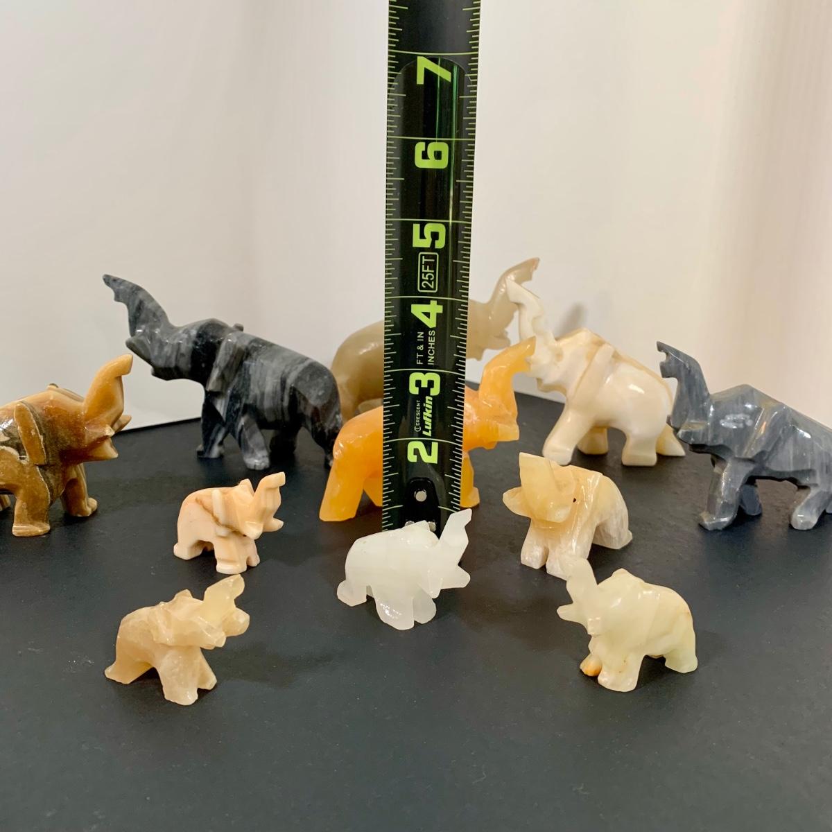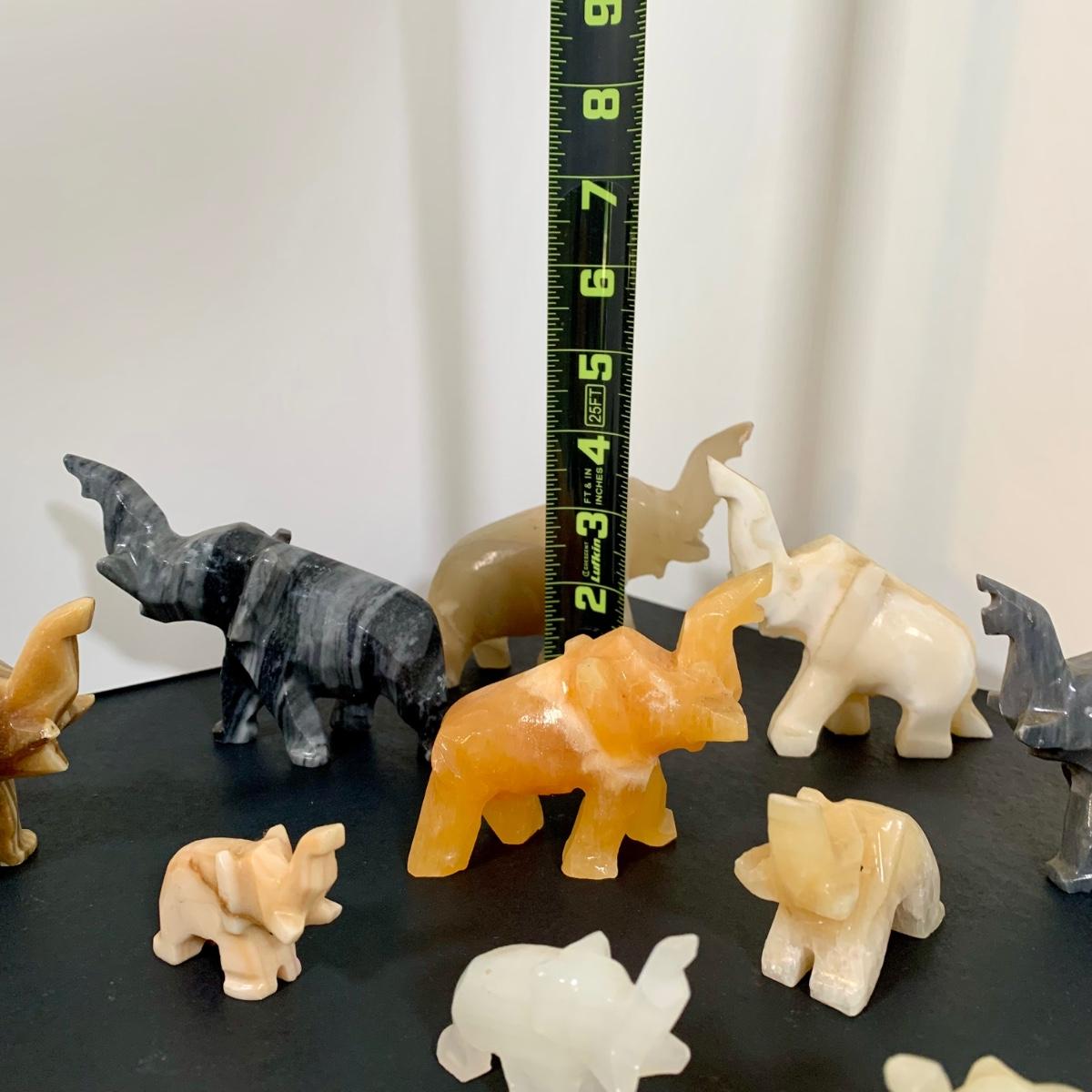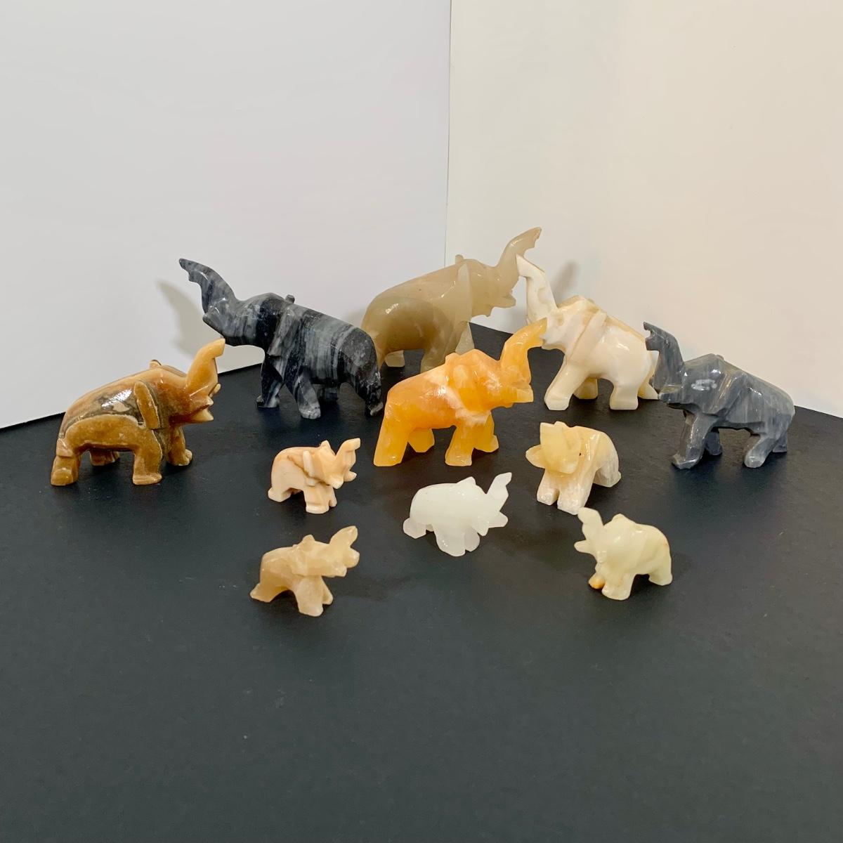 LOT 228 L: Large Vintage Hand Carved in Mexico Collection of Onyx Elephants