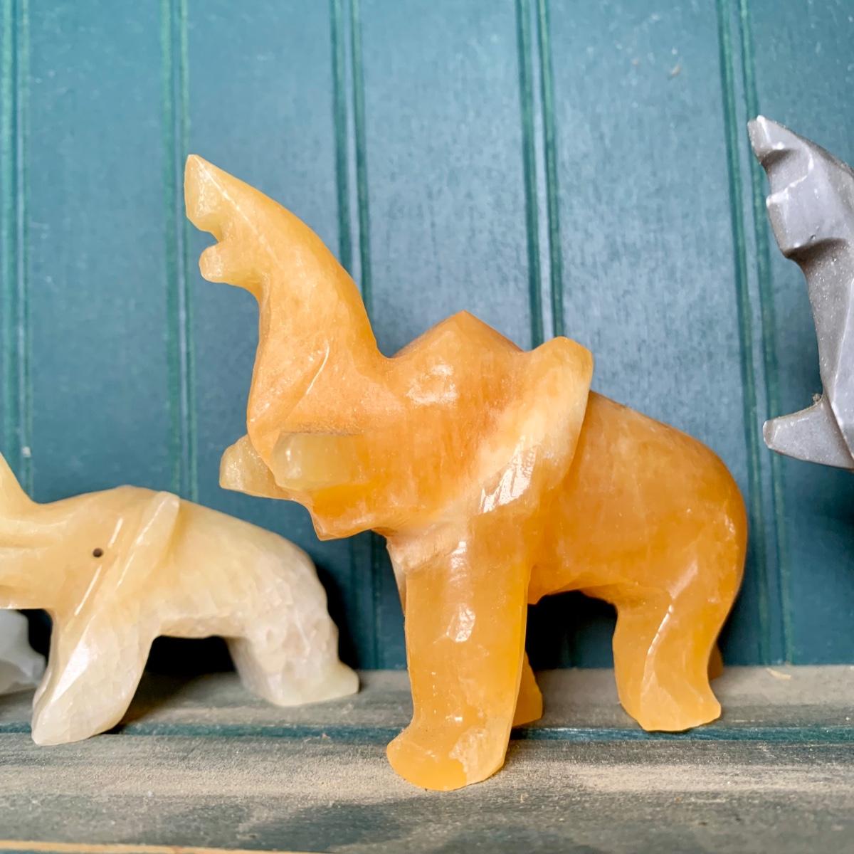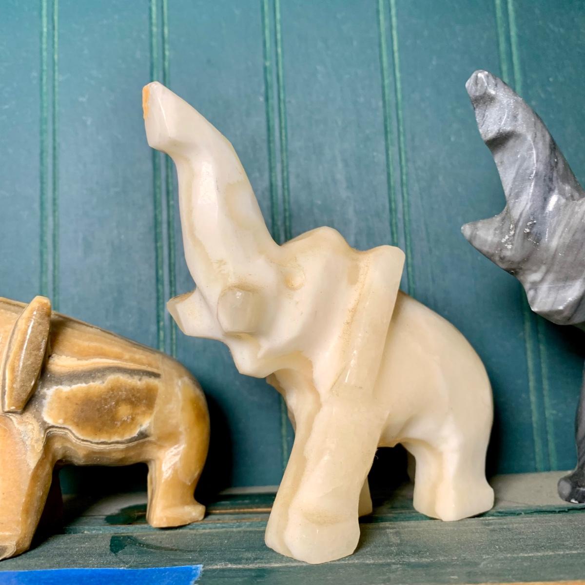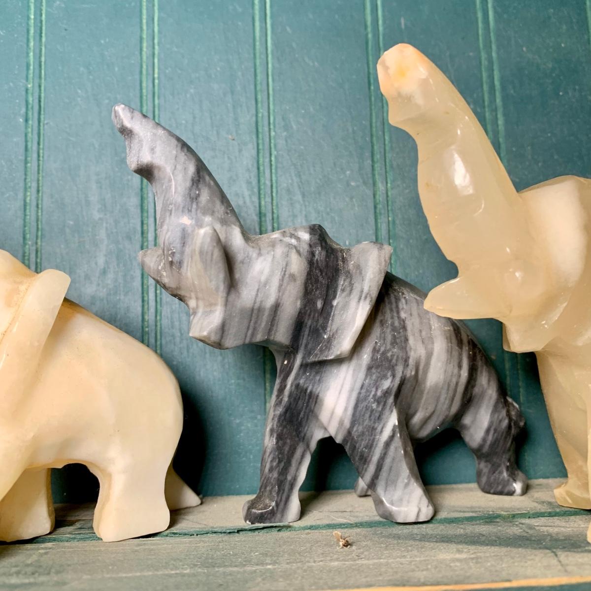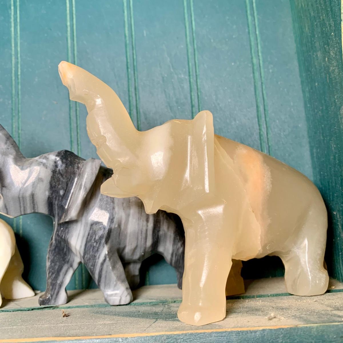 LOT 228 L: Large Vintage Hand Carved in Mexico Collection of Onyx Elephants