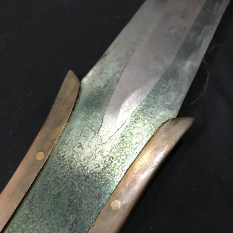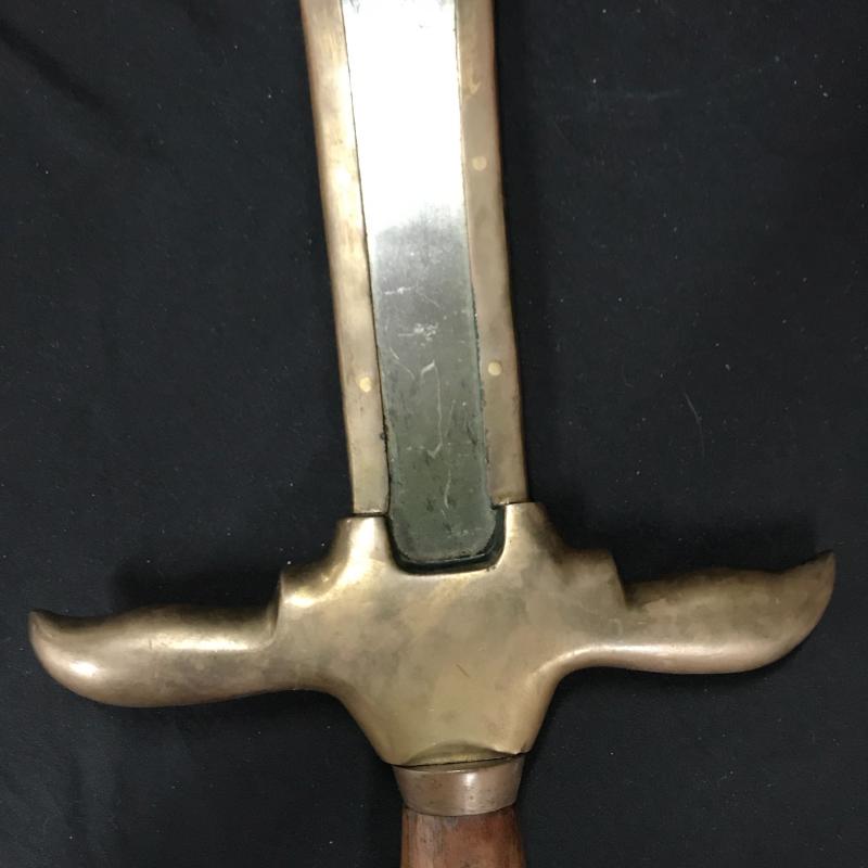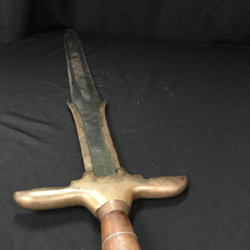 This heavy sword has wooden handle and brass accents. Sword measures 45” long (blade is 33” of that). Very heavy with beautiful detail. No shipping. Local pick up only in Asheville.