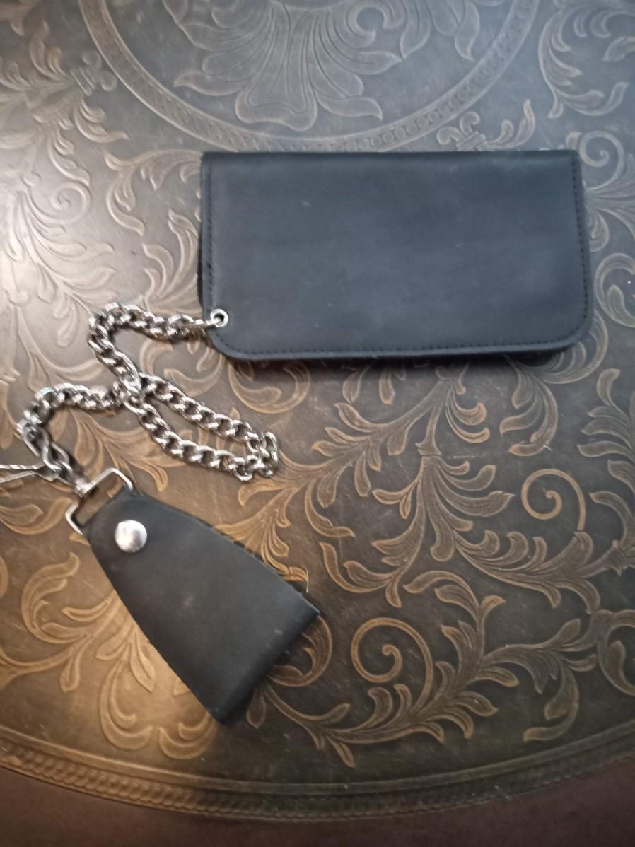 LOT 228 LEATHER WALLET WITH CHAIN AND A HIDDEN KNIFE BRACELET