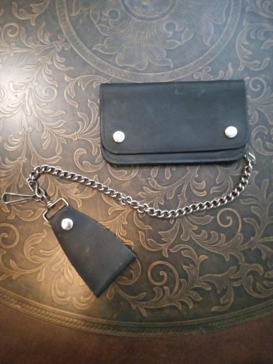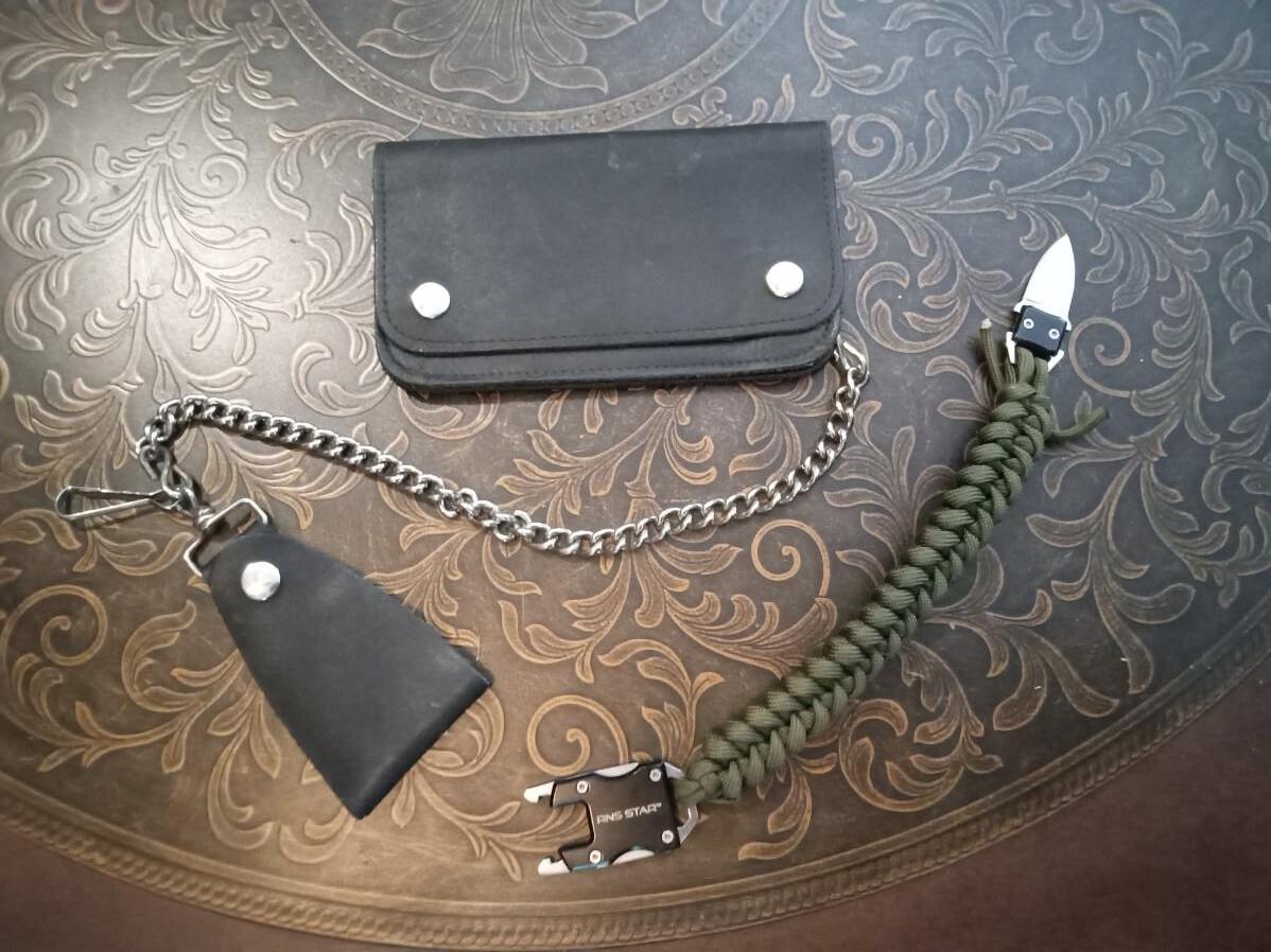 LOT 228  LEATHER WALLET WITH CHAIN AND A HIDDEN KNIFE BRACELET
