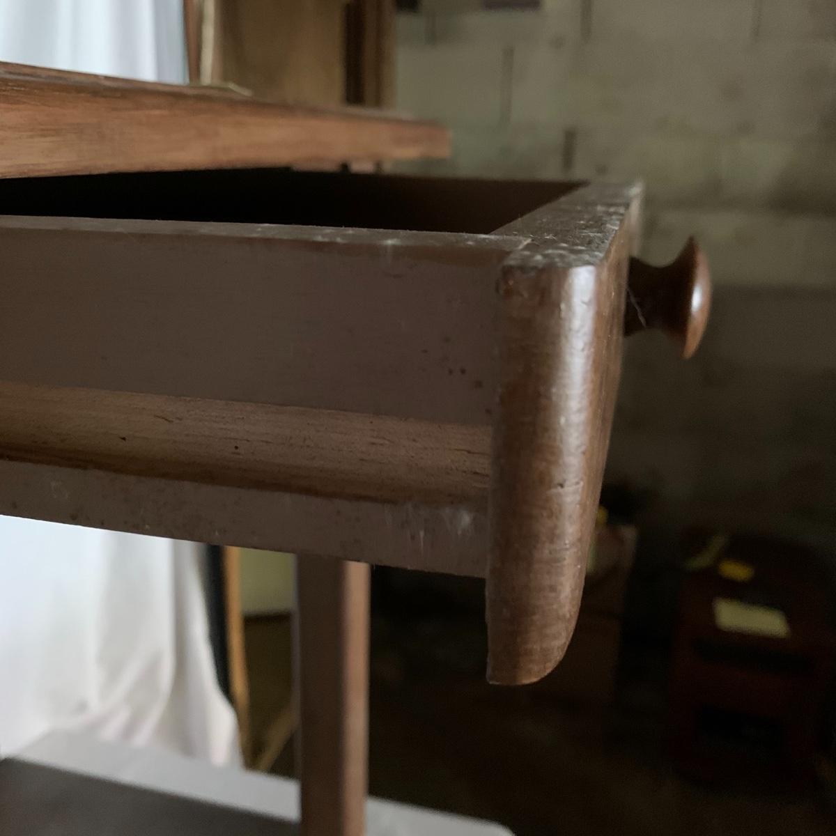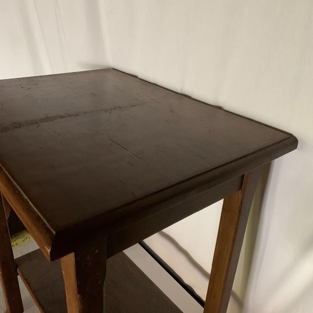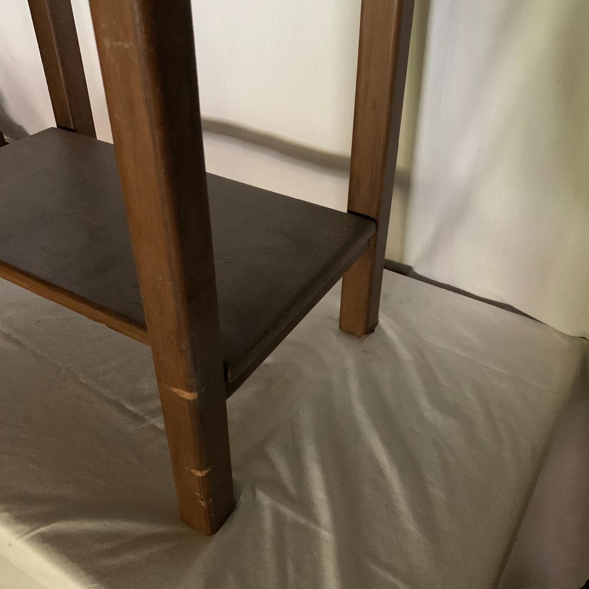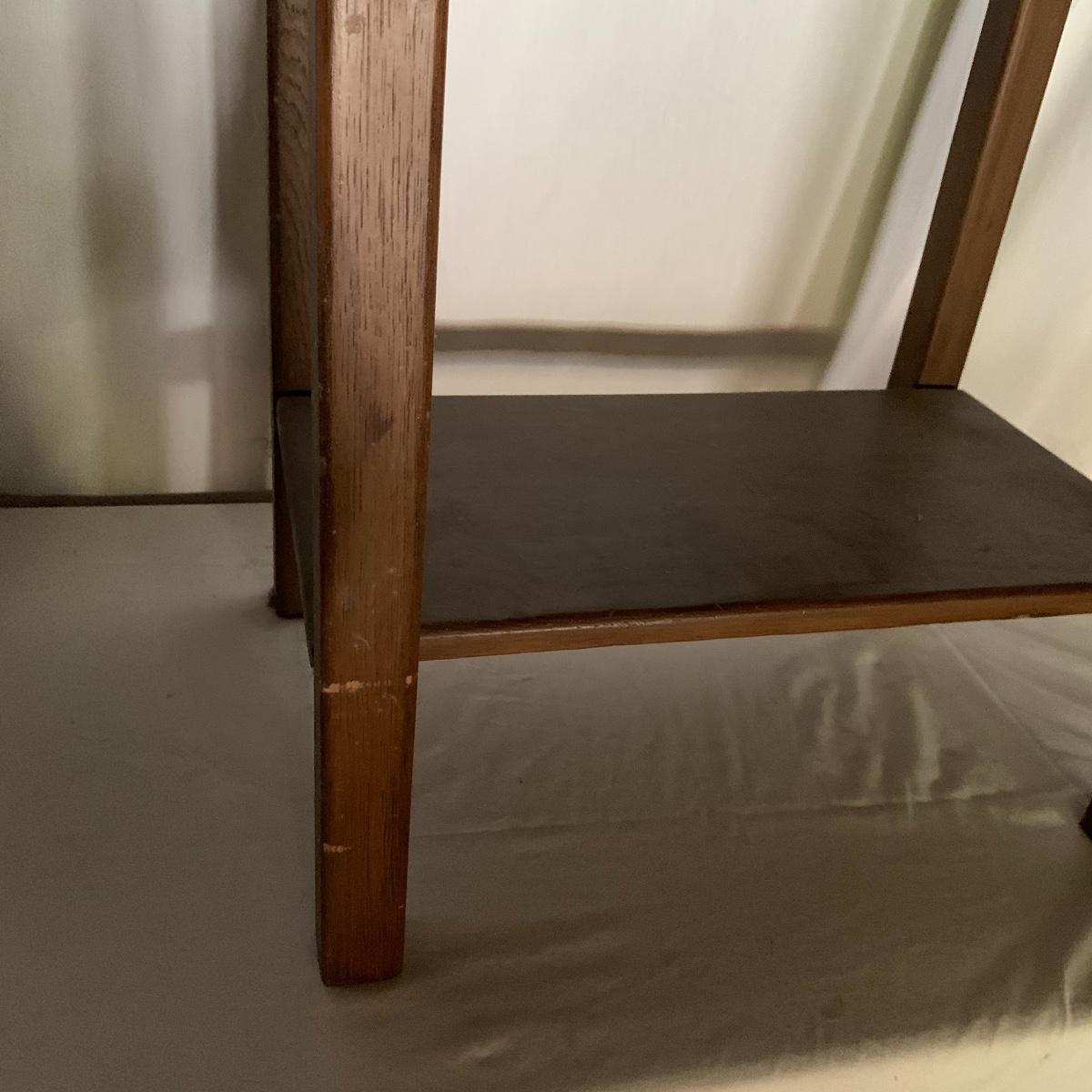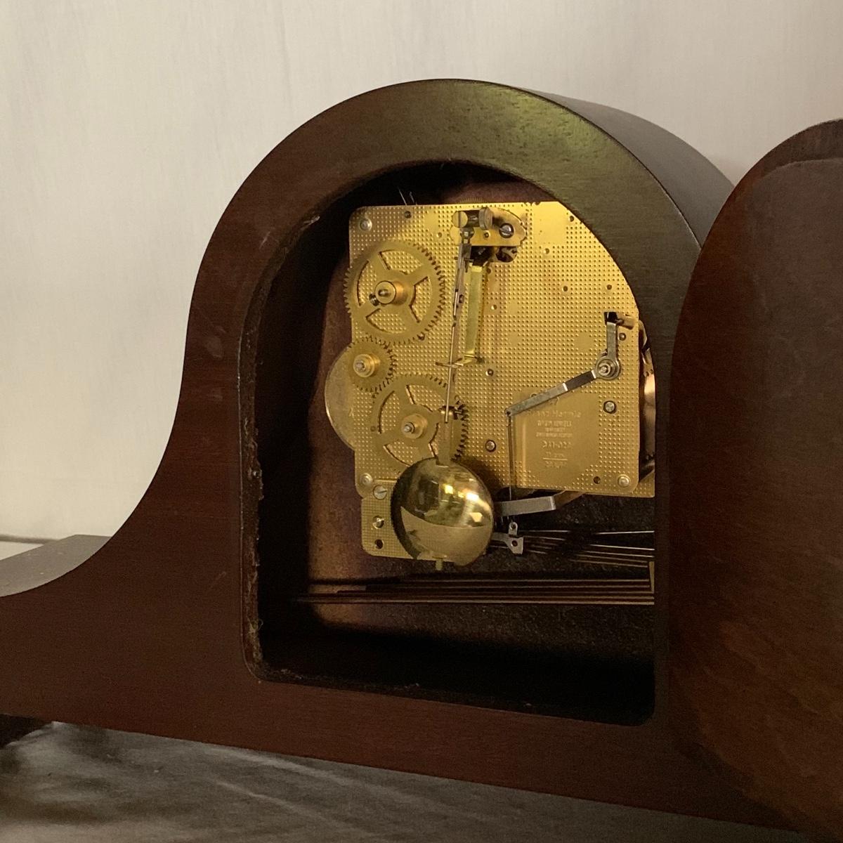 This is a lovely mantle clock and side table. The mantle clock is made of wood. It has a key to wind it. It winds and ticks. A brand name cannot be seen, but it does state that it was made in Germany. It measures 18” x 5” x 10”. The side table is also made from wood. It has one small drawer and a shelf. It shows some wear, but is in very good condition. It measures 24” x 18.5” x 28.25”. Local pickup only.