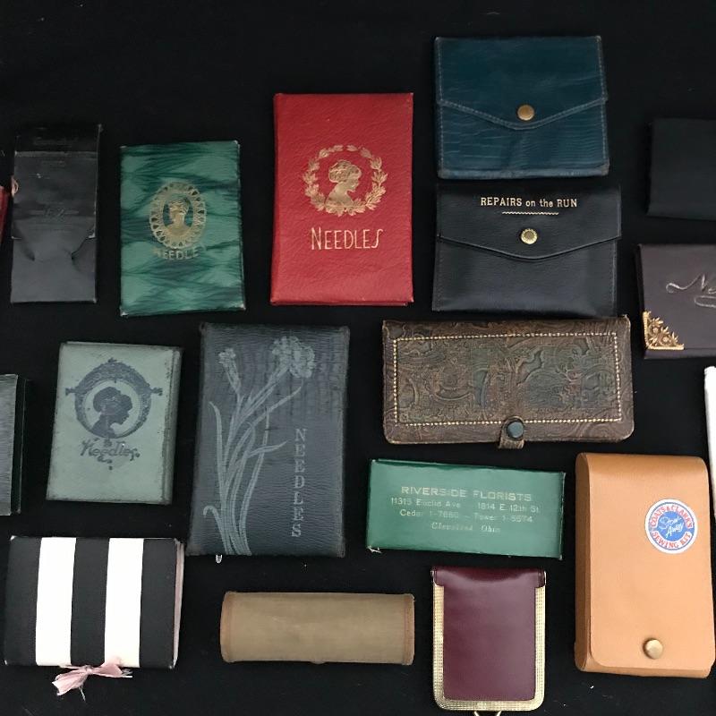 Add a unique flare to your sewing room! This sweet collection of twenty-one vintage and antique needle cases would look wonderful in a display case. Largest is approx. 6” x 3”. See pics. Shipping available.