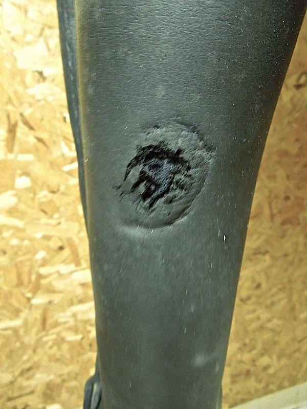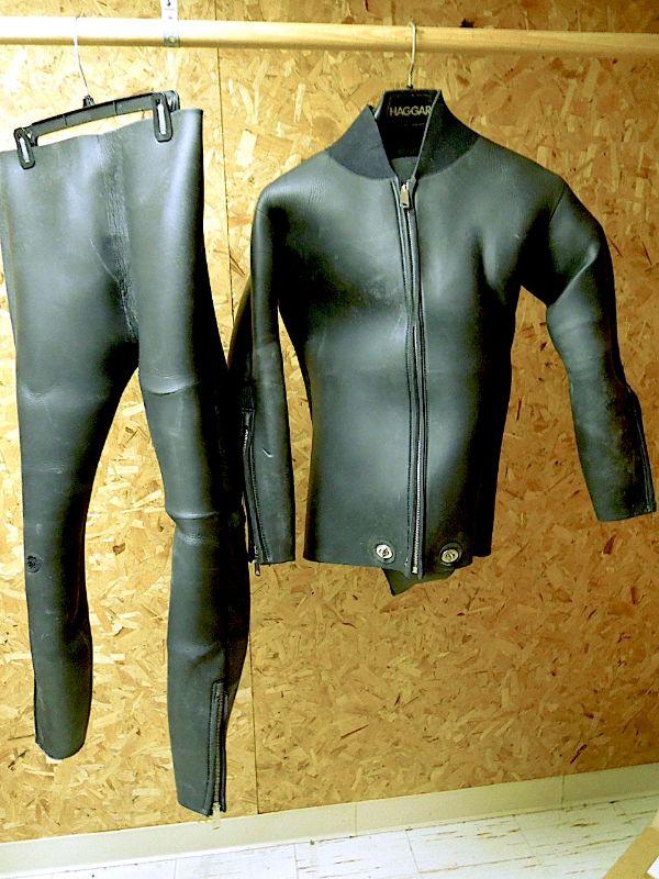 Size 38 mens. Inseam is 31". No brand name on suit. Used and smells salty. Worn spot on knee that doesn't go through the suit. Santa Rosa II mask in zip bag and pair of split toe Patagonia size XL surfing boots with felt bottoms like new. Seams and zippers on suit look good