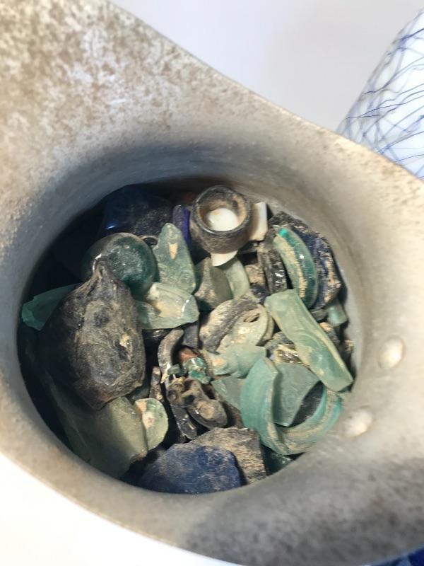 Lot 228B: Ball Light Lamp & Pitcher full of Antique Glass Parts