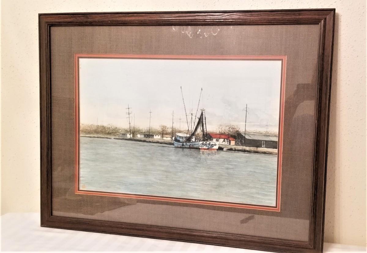 Lot #228 Shrimp Boat Print in Frame - no signature