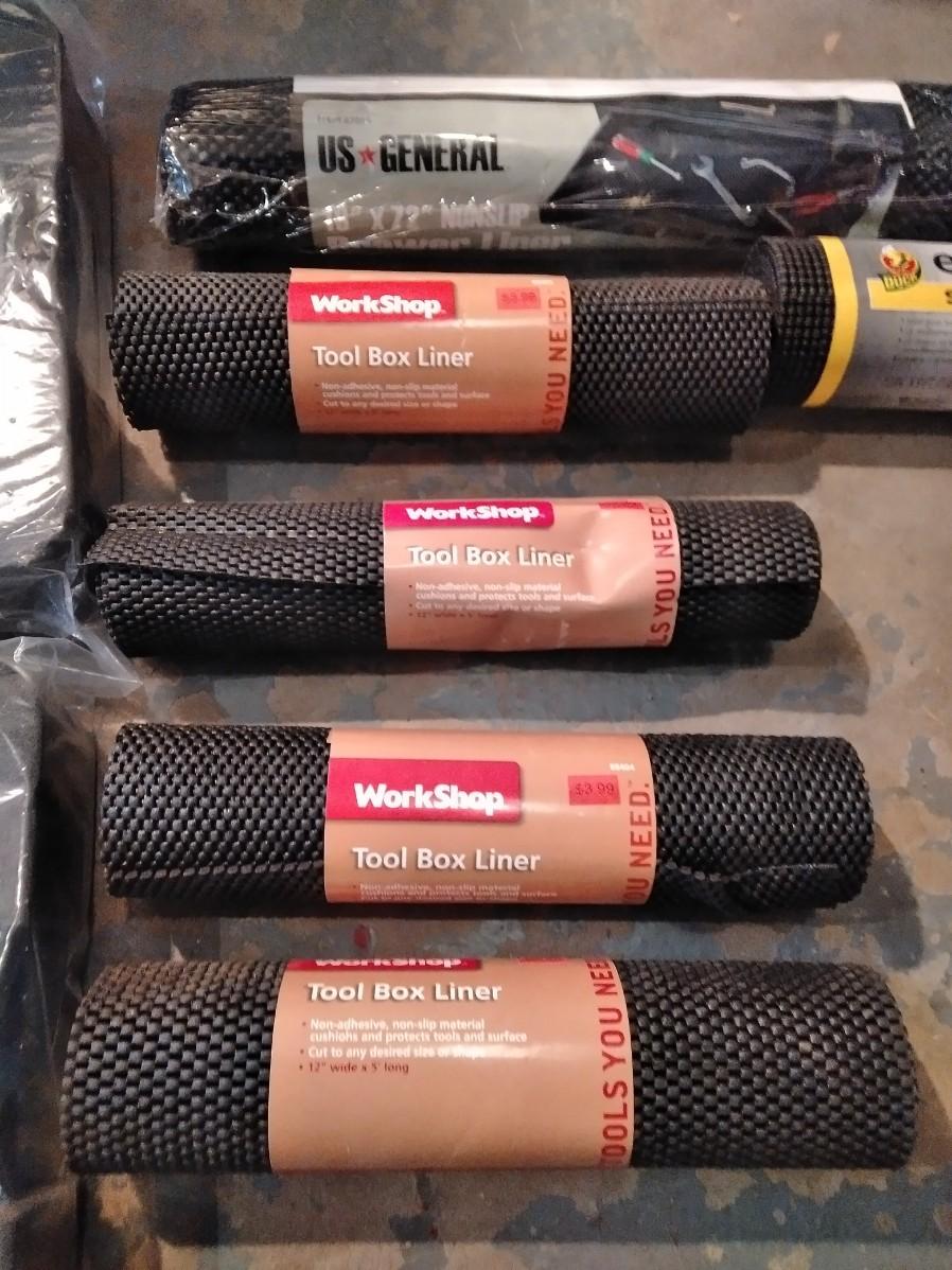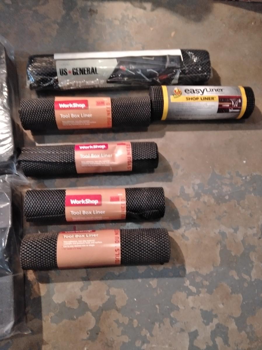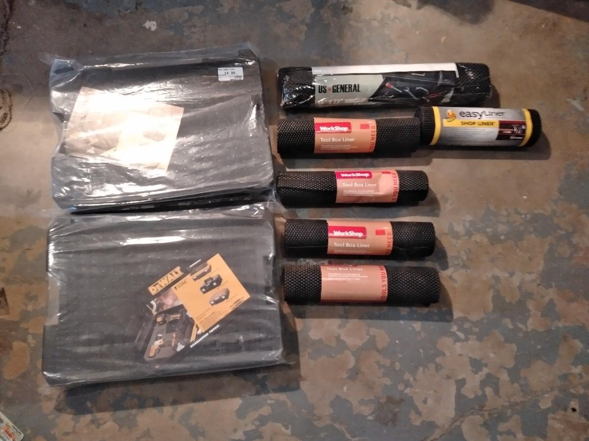 TWO DEWALT TOOLBOX FOAM AND ROLLS OF TOOLBOX DRAWER LINER