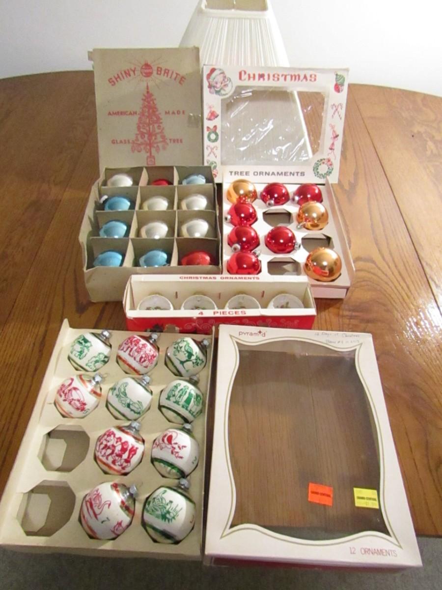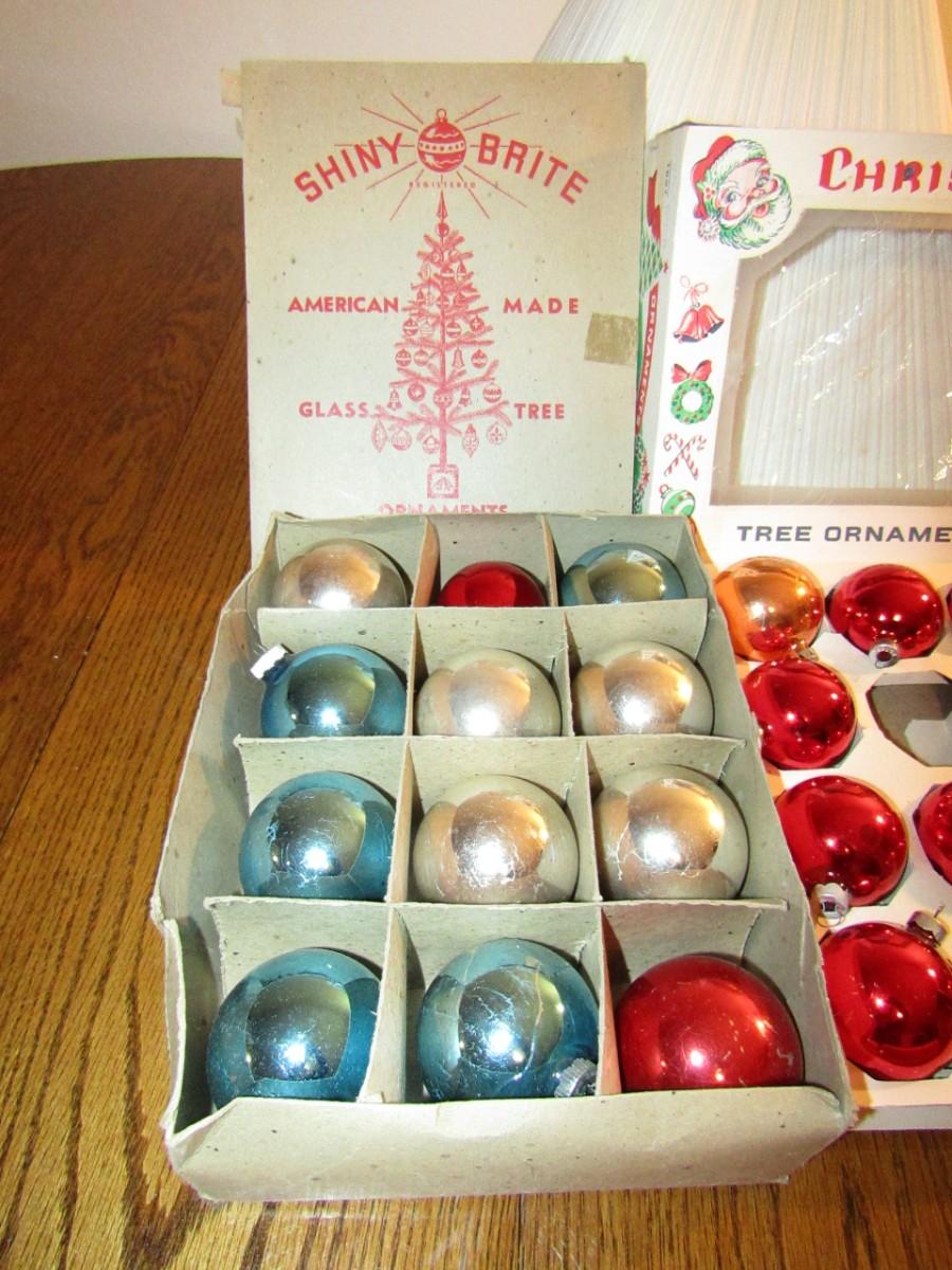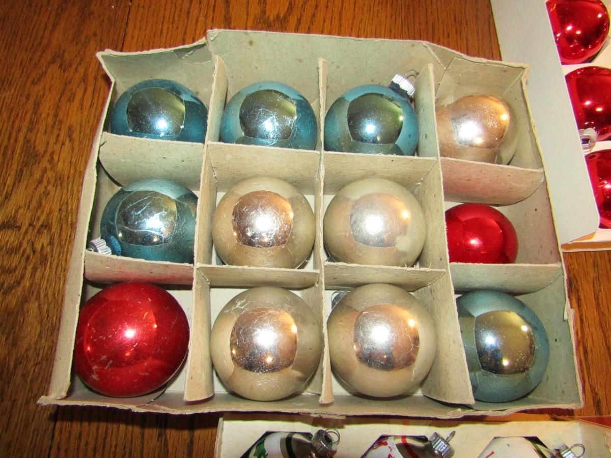 2 MORE BOXES OF GLASS ORNAMENTS, SOME HAVE LIGHT SCRATCHES