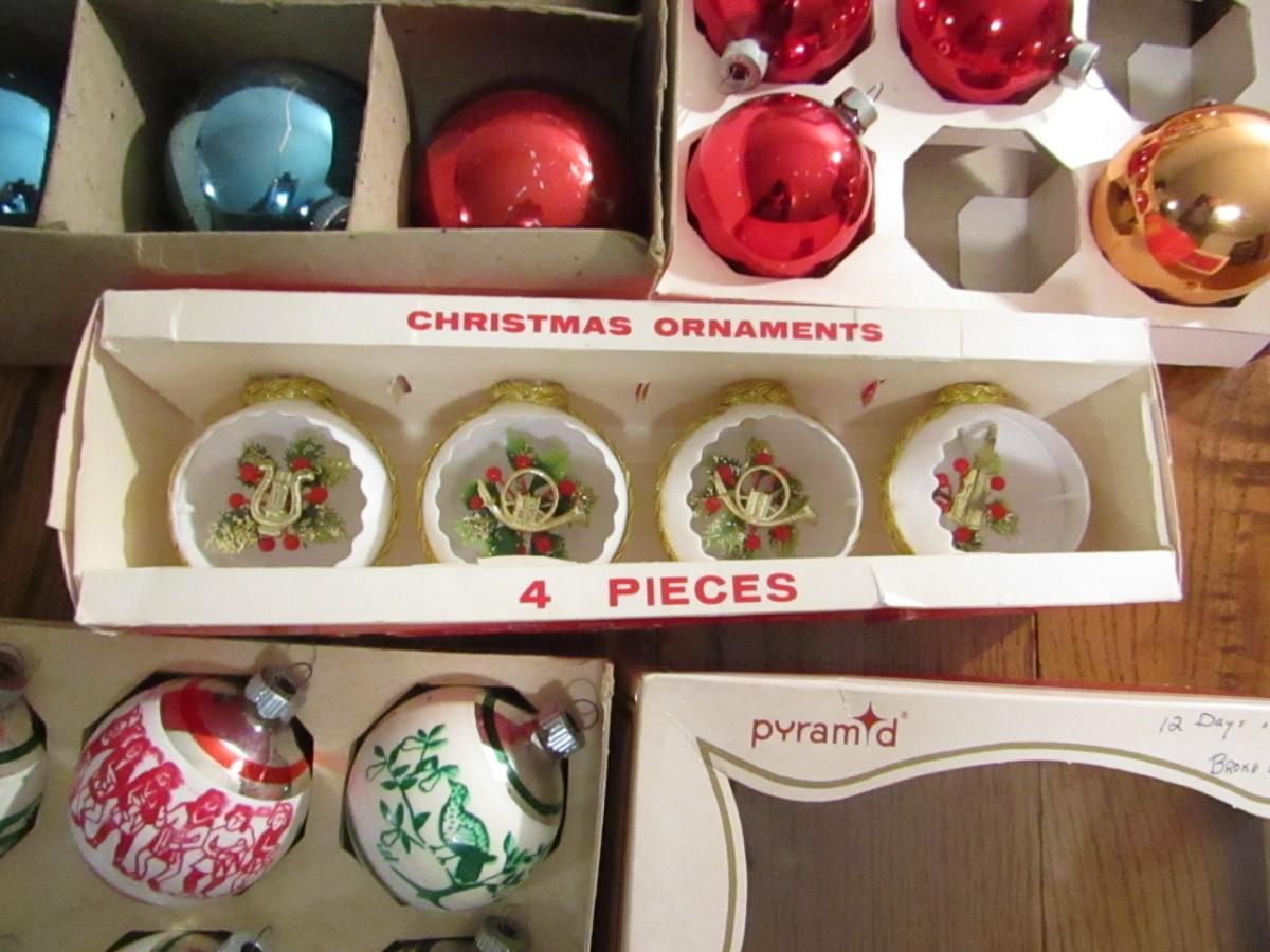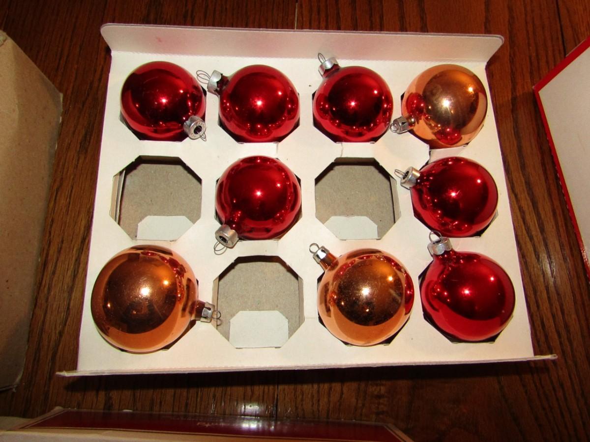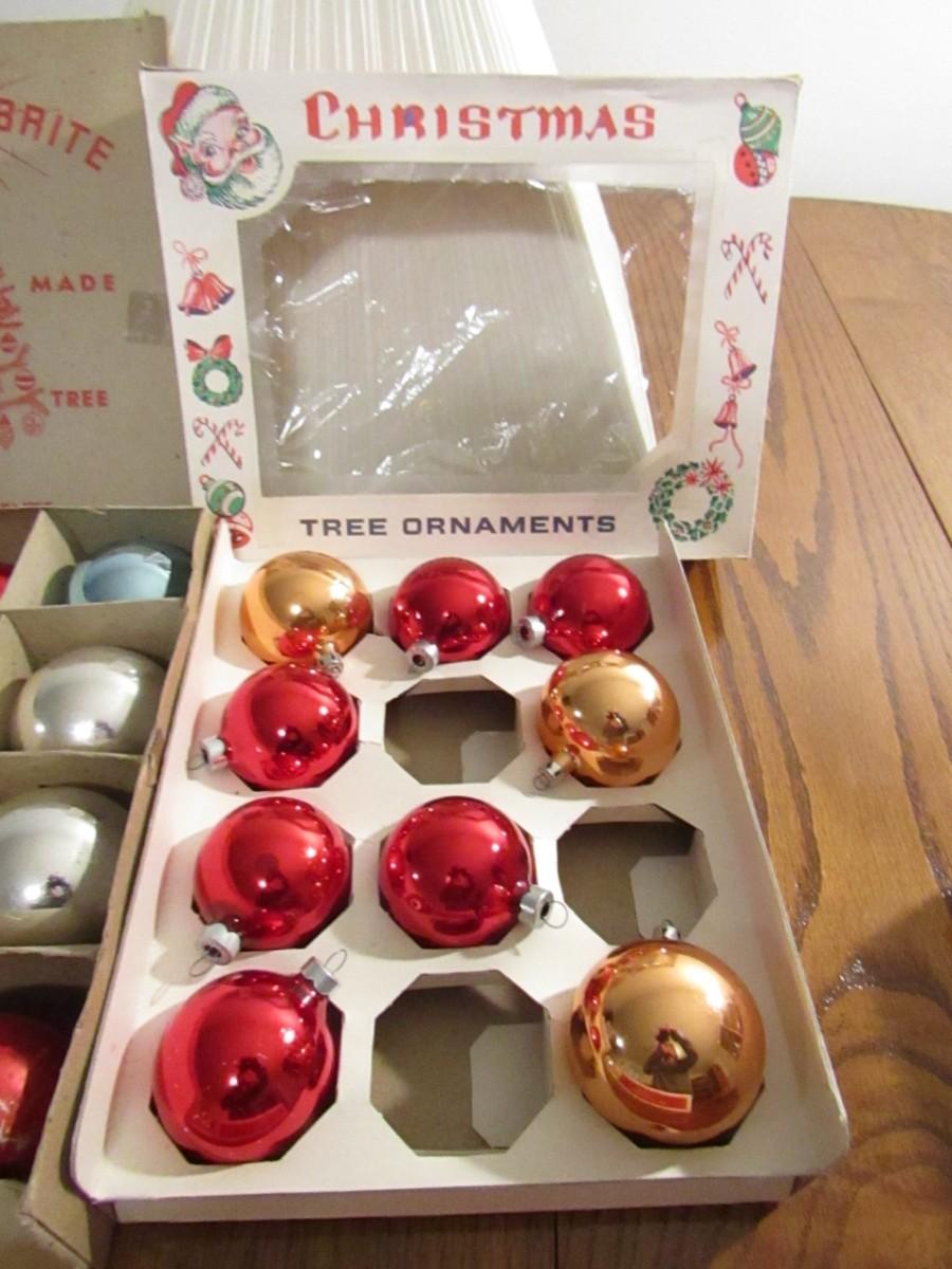 2 MORE BOXES OF GLASS ORNAMENTS, SOME HAVE LIGHT SCRATCHES