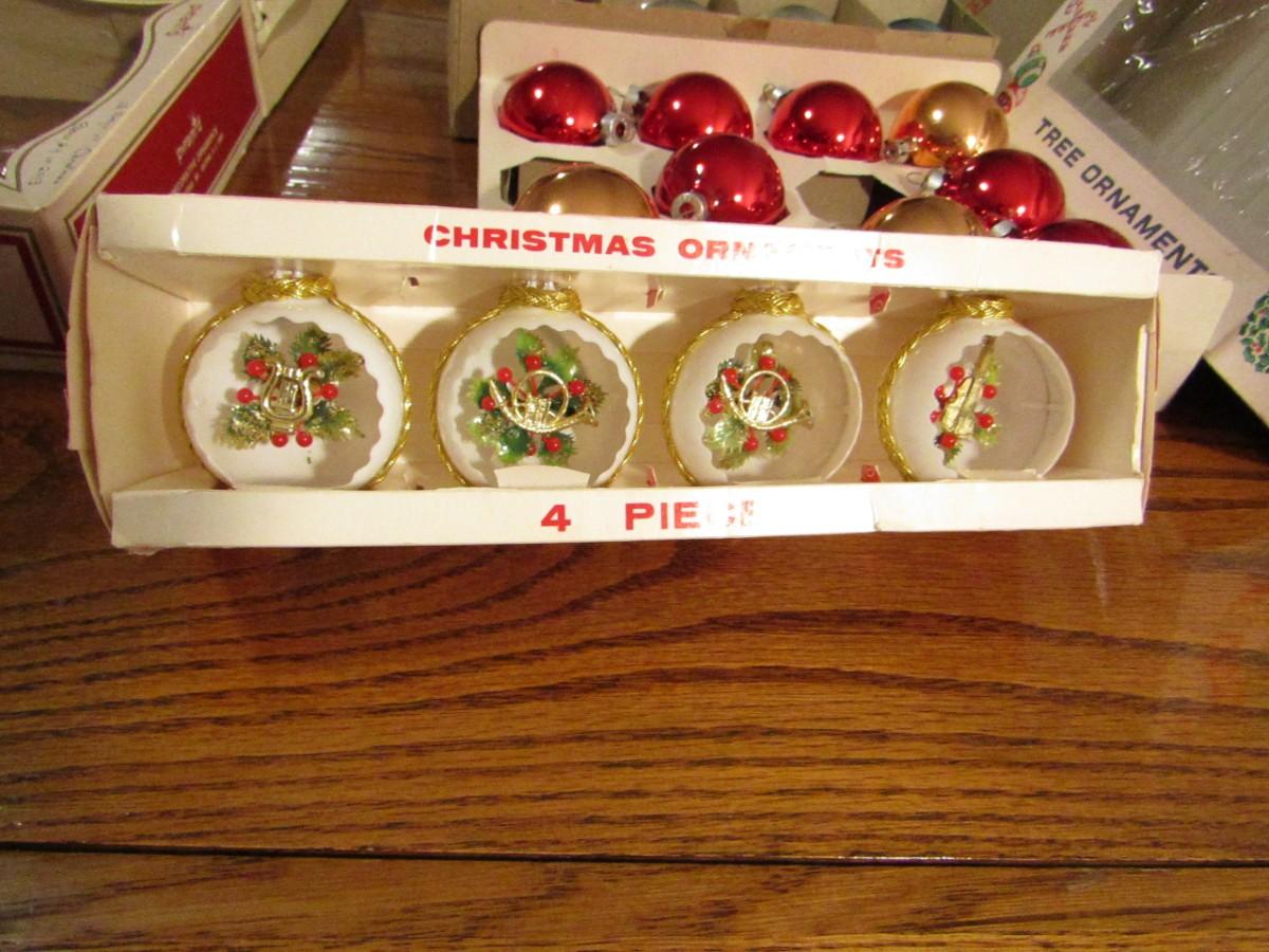 SMALL BOX OF 4 PLASTIC ORNAMENTS