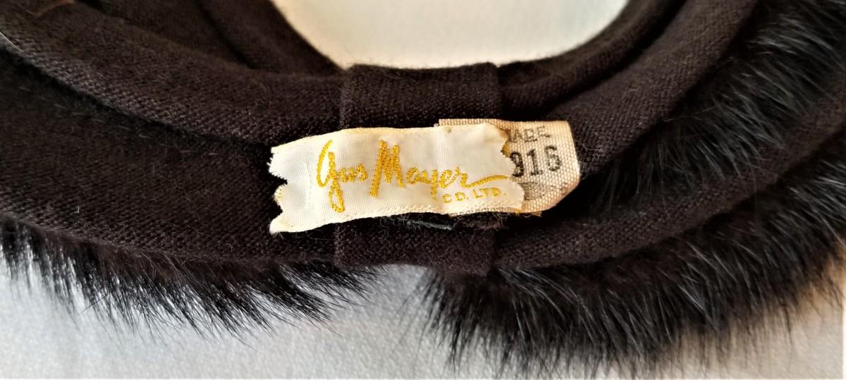 Both of these vintage mink pieces are in great condition. Cute little 1950's/60's mink hat with Gus Meyer label - also a mink muff in great condition - lining good. Muff measures 11" x 10".