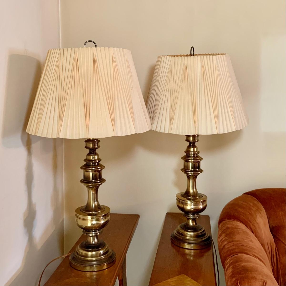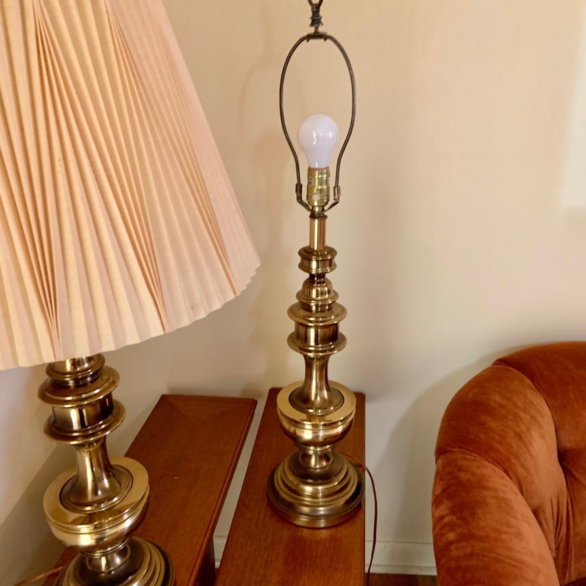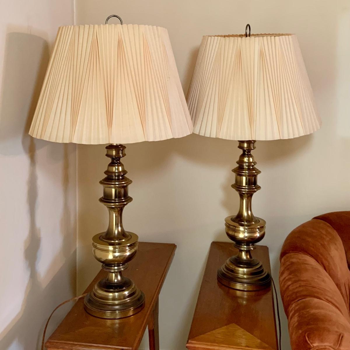 The Lamps are 34" tall. Please see all pictures as they are the best representation of the items. The pictures show condition, measurements if taken, and what is included in the lot. Due to the large amount that we photograph and the time frame, we are not always able to take measurements. All items unless noted, are pre-owned and have been used. If you purchased furniture, you must bring help. We do not allow one person to carry large furniture out on their own. Bring help, tools and a truck for the safety of our client’s homes, and your personal safety. Any damages that result to the property including walls, and floors due to moving of the furniture will be charged to the buyer. Company policy. Thank you