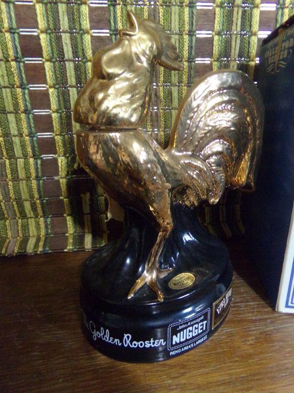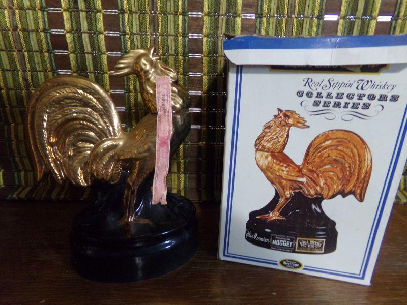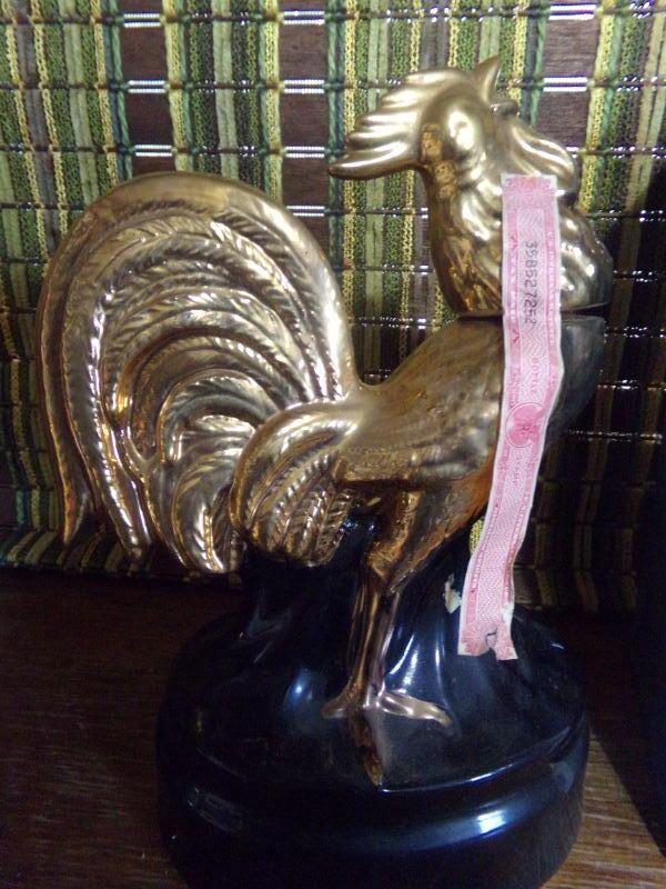 LOT 230 EZRA BROOKS RARE VINTAGE GOLD ROOSTER DECANTER