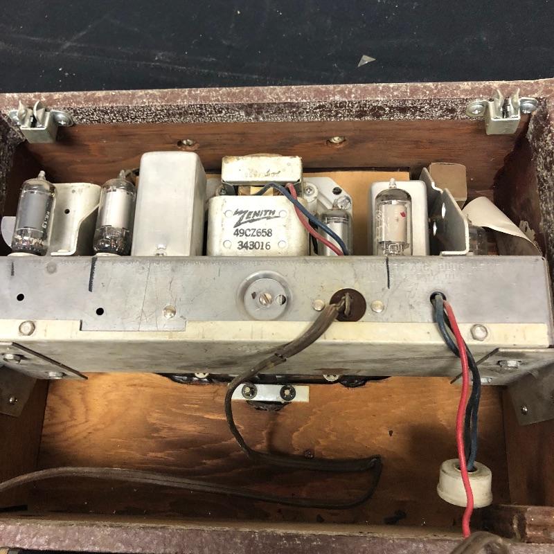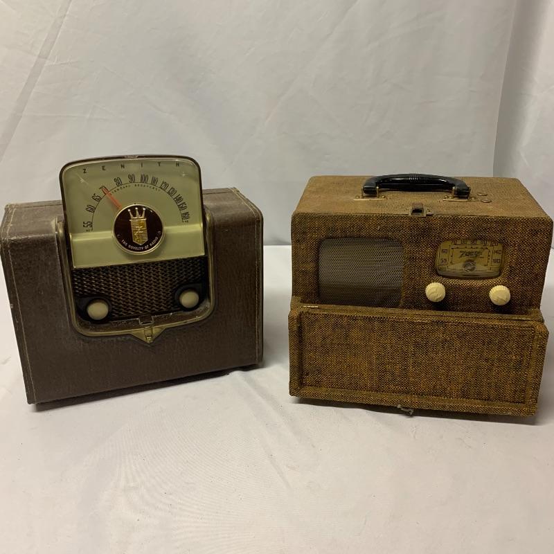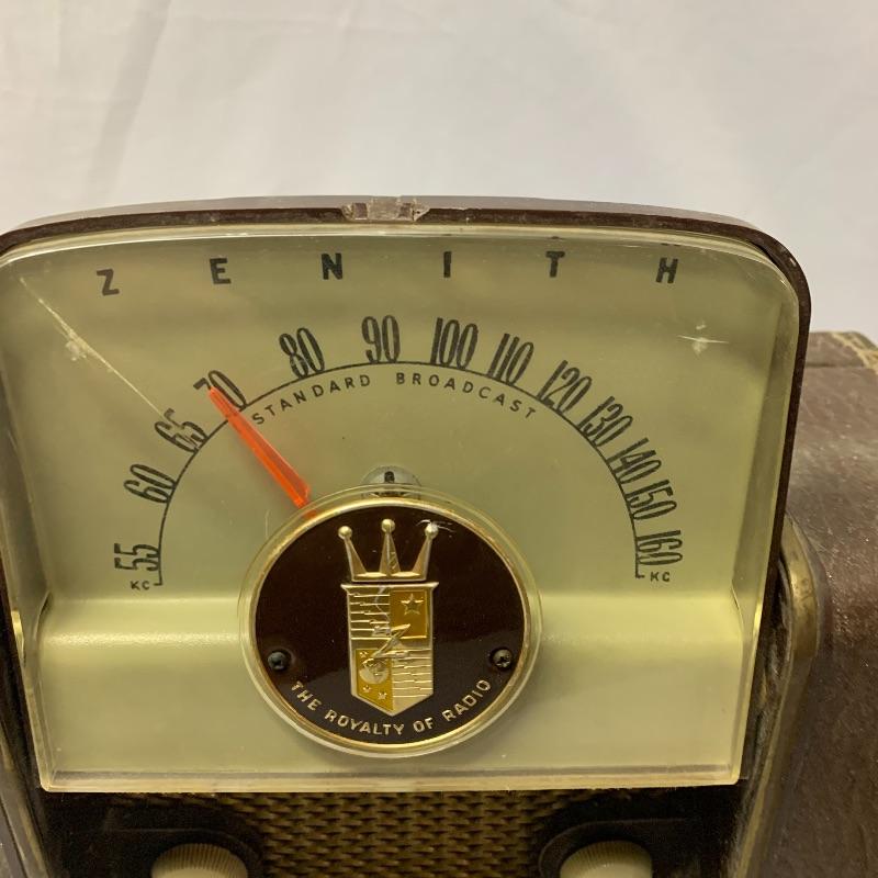 This lot includes includes Two Zenith Radios. The royalty of radio zenith, 49CZ658 343016, has a back which opens. It powers on and the stations come in clearly! The Zenith long distance radio has no power cord and therefore cannot be tested.
