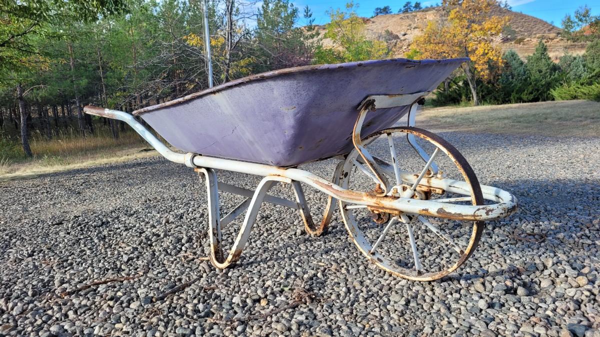 Lot 229: Antique Farm and Garden Metal Wheel Wheelbarrow