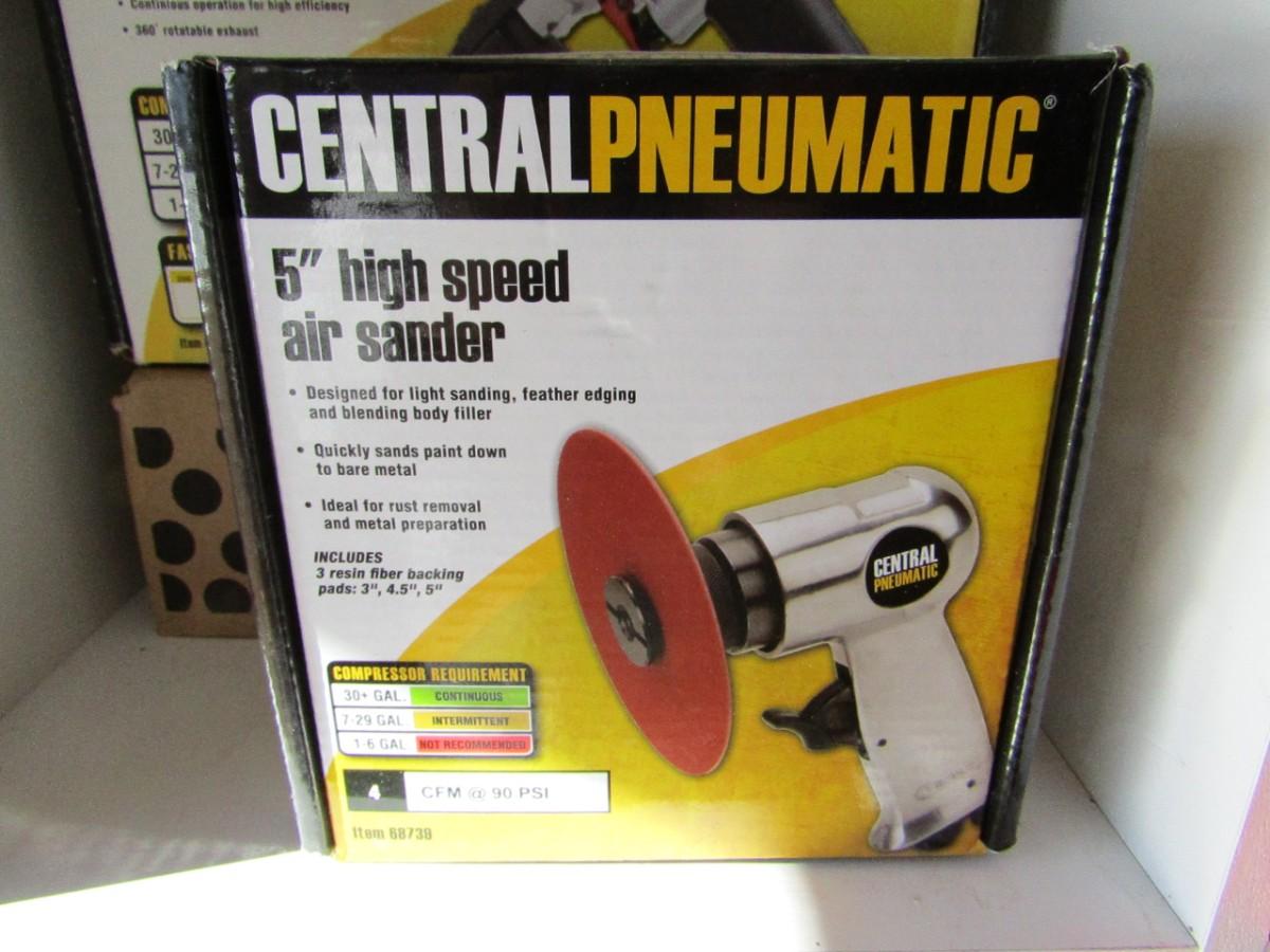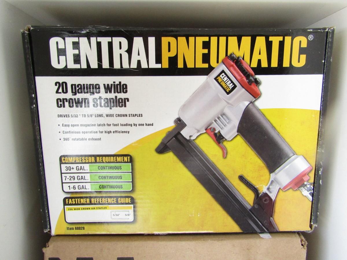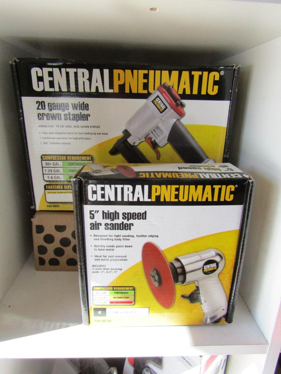 LOT 229 NEW AIR 20 GAUGE WIDE CROWN STAPLER AND 5" AIR SANDER