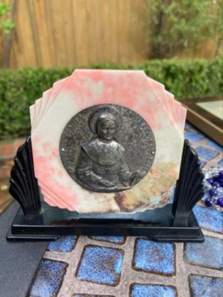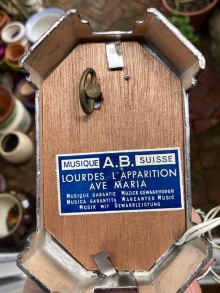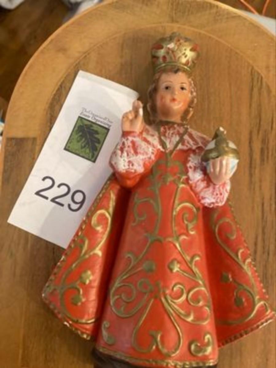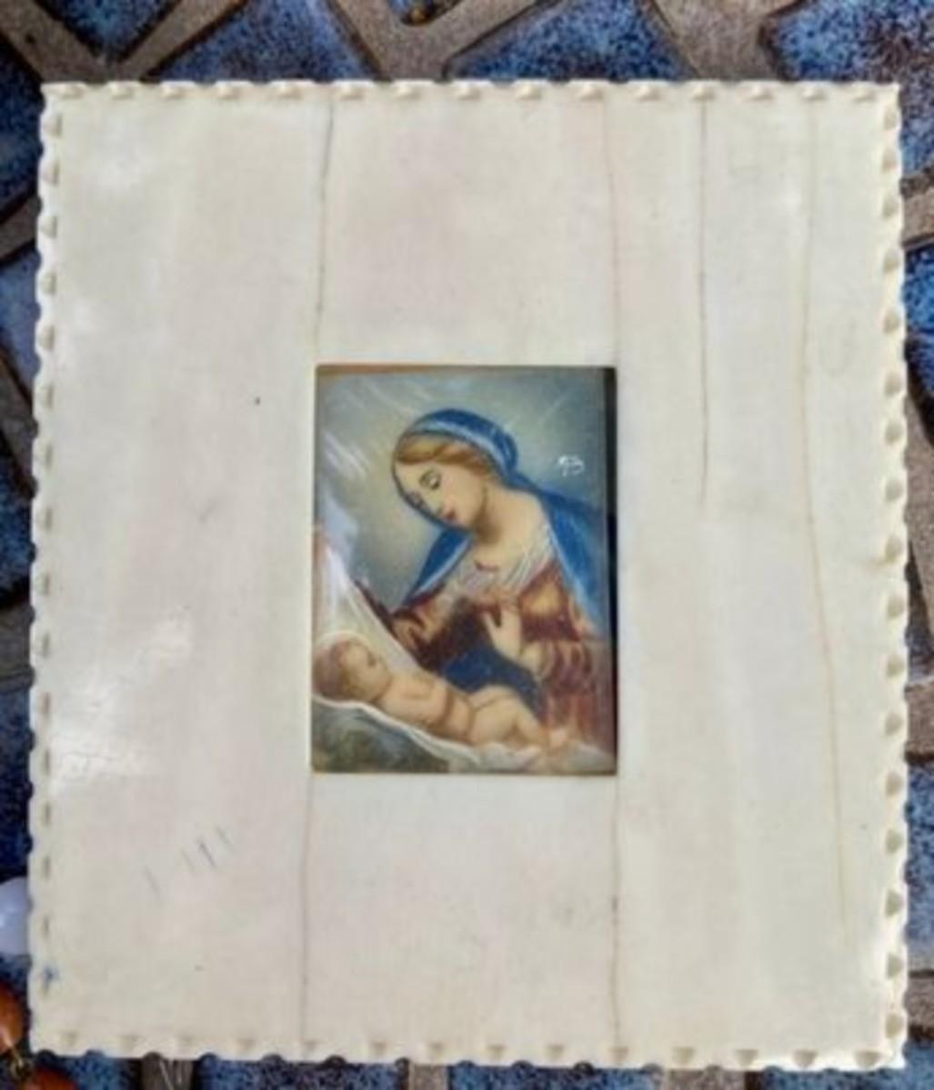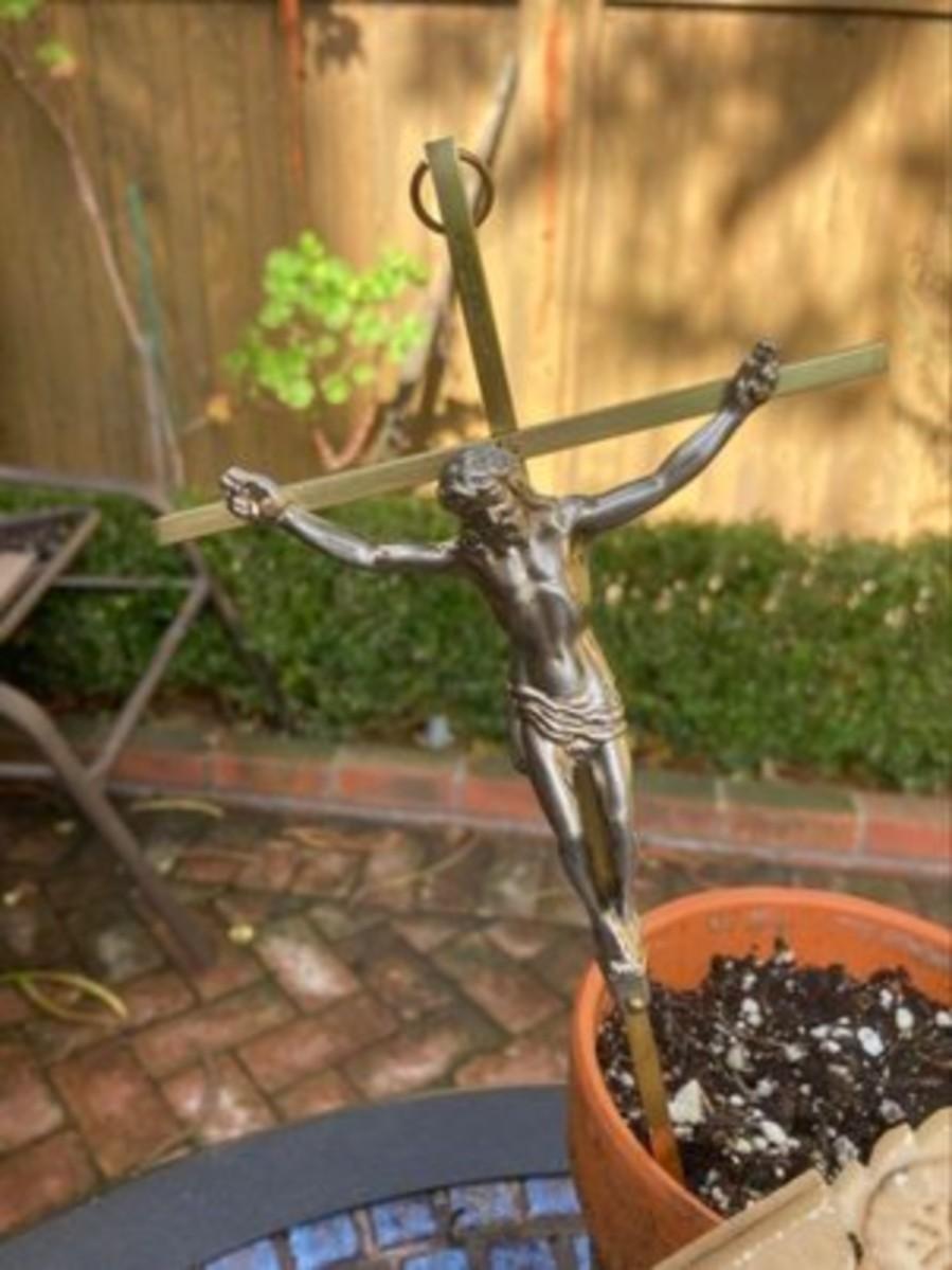 Crosses, statues framed icons, vases, Lourdes night light music box (untested), a collection of rosary beads. Framed art ranges from 13" x 15" to 5" x 7"