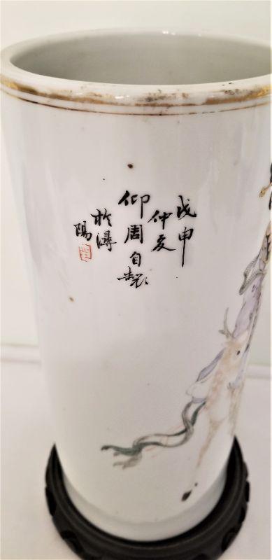 Lot #229 Antique Chinese Brush Pot - 18th Century - on modern stand