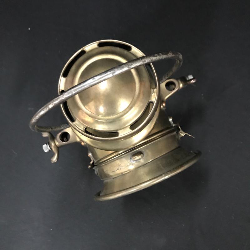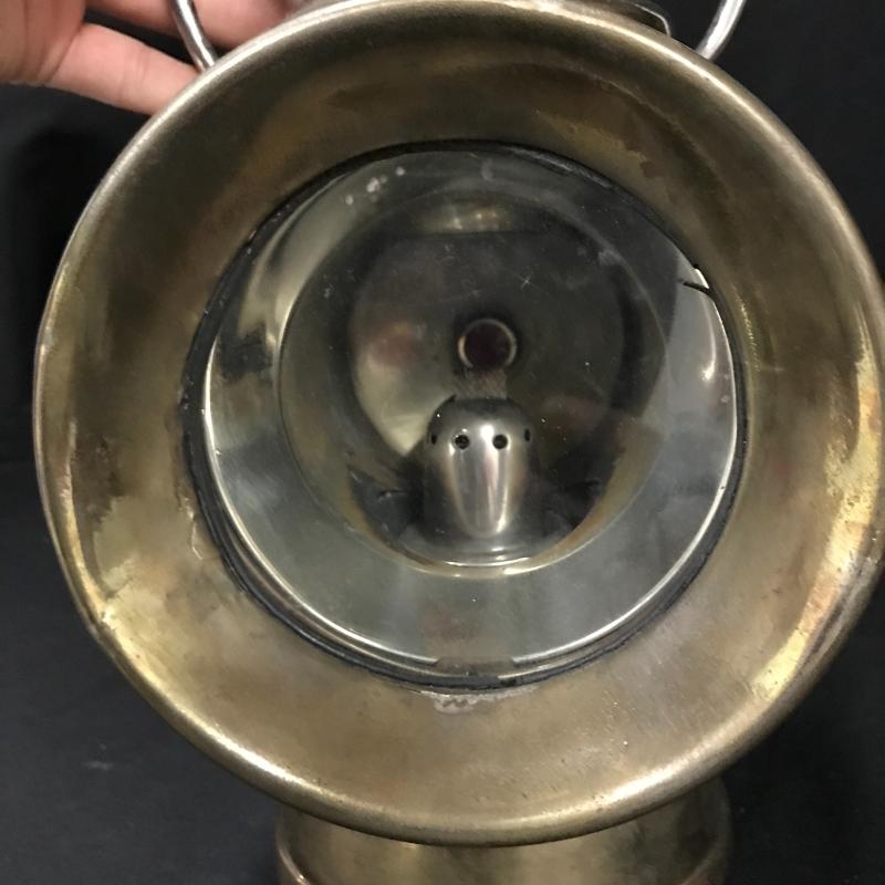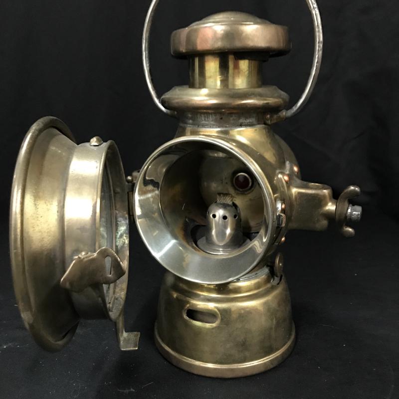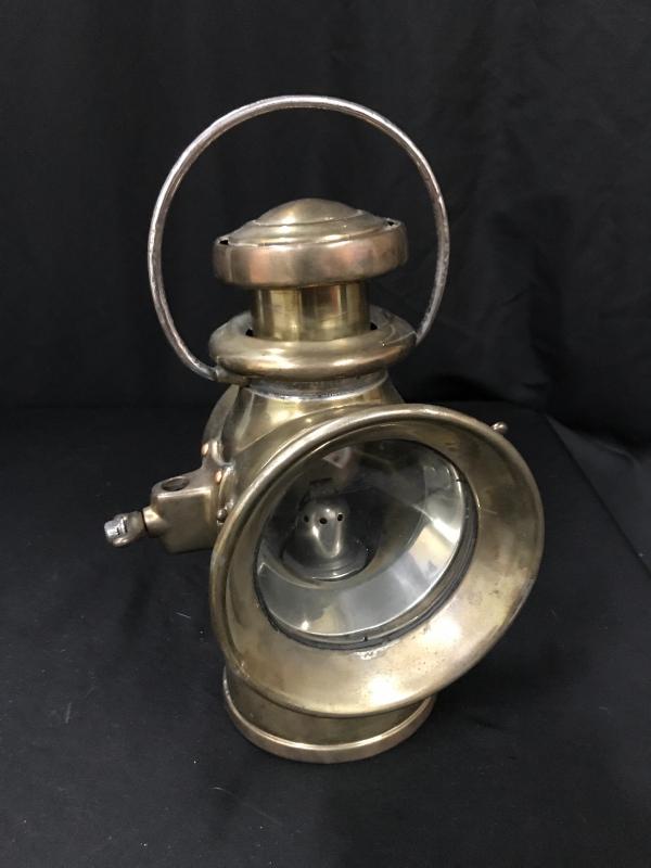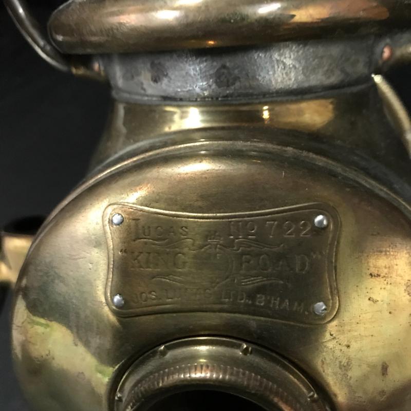 Antique brass car oil lamp for military vehicle. Plaque on back says “ Lucas No 722 King Road”. Measures 9”l x 7”w x 13”h Excellent Condition. Shipping or local pick up in Asheville